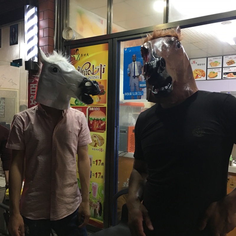 หน้ากากหัวม้า คอสเพลย์แต่งตัว หน้ากากหัวม้าฮาโลวีน ตลก หน้ากากการแสดงบนเวที อุปกรณ์ปาร์ตี้