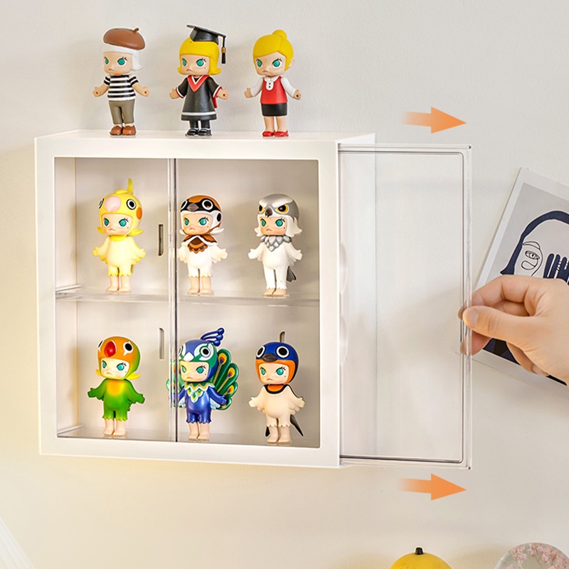🌟COD🌟กล่องฟิกเกอร์ กล่องเก็บโมเดล 2ชั้น การออกแบบประตูบานเลื่อน แขวนผนังได้ ประหยัดพื้นที่ ป้องกันฝุ่น