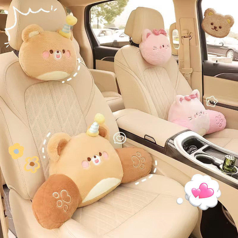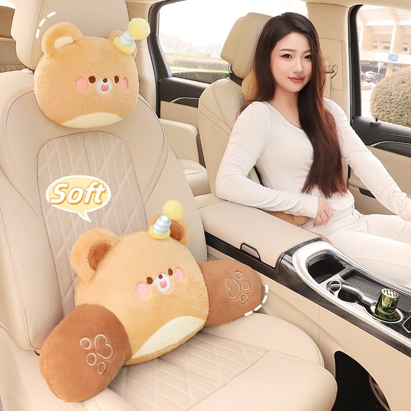 COD หมอนรองคอบนรถ หมอนอิง หมอนเอว รูปร่างหมีวันเกิด ไห้สุดน่ารัก สําหรับตกแต่งภายในรถยนต์