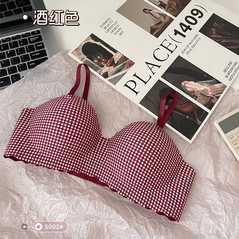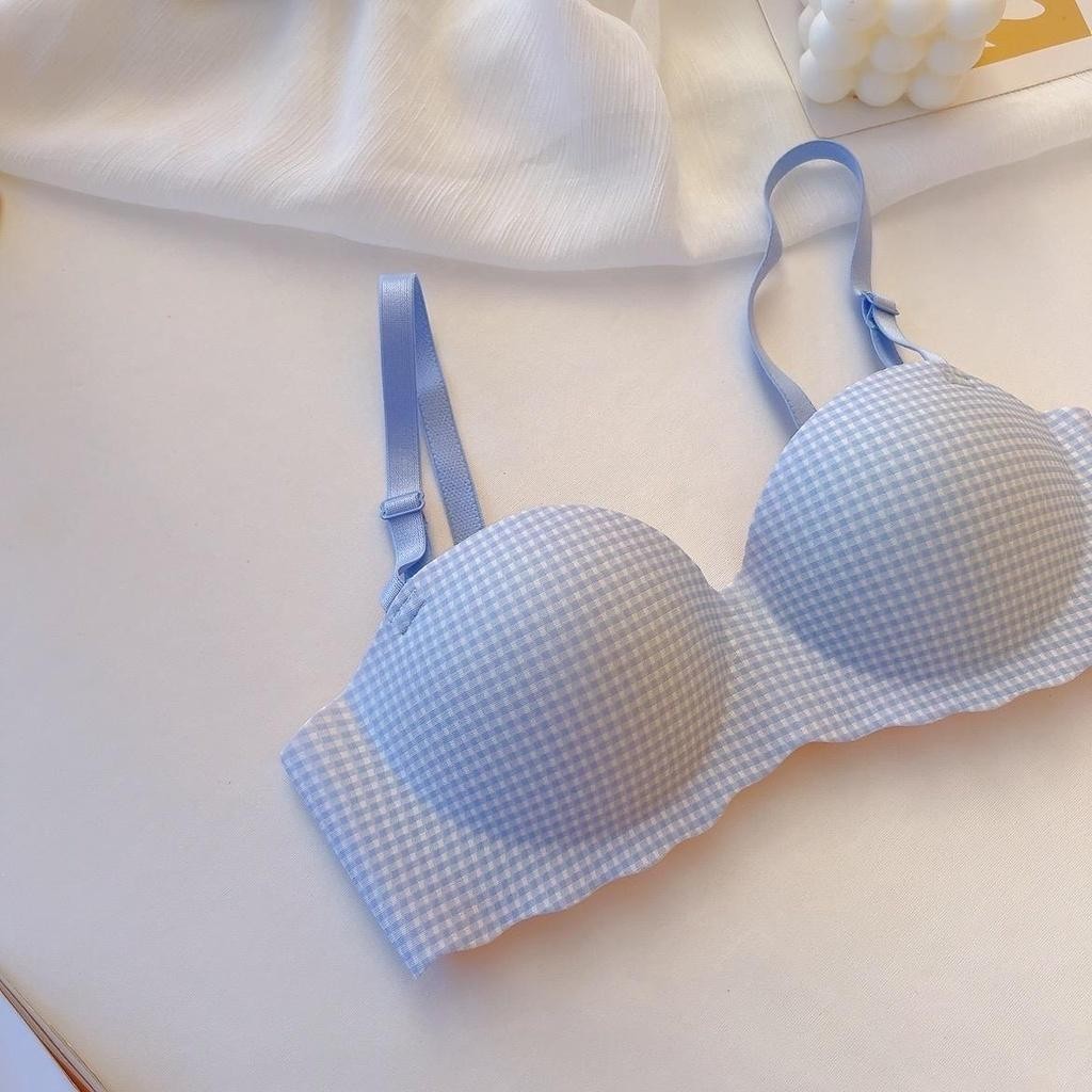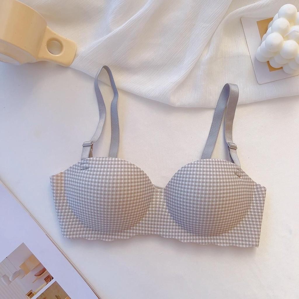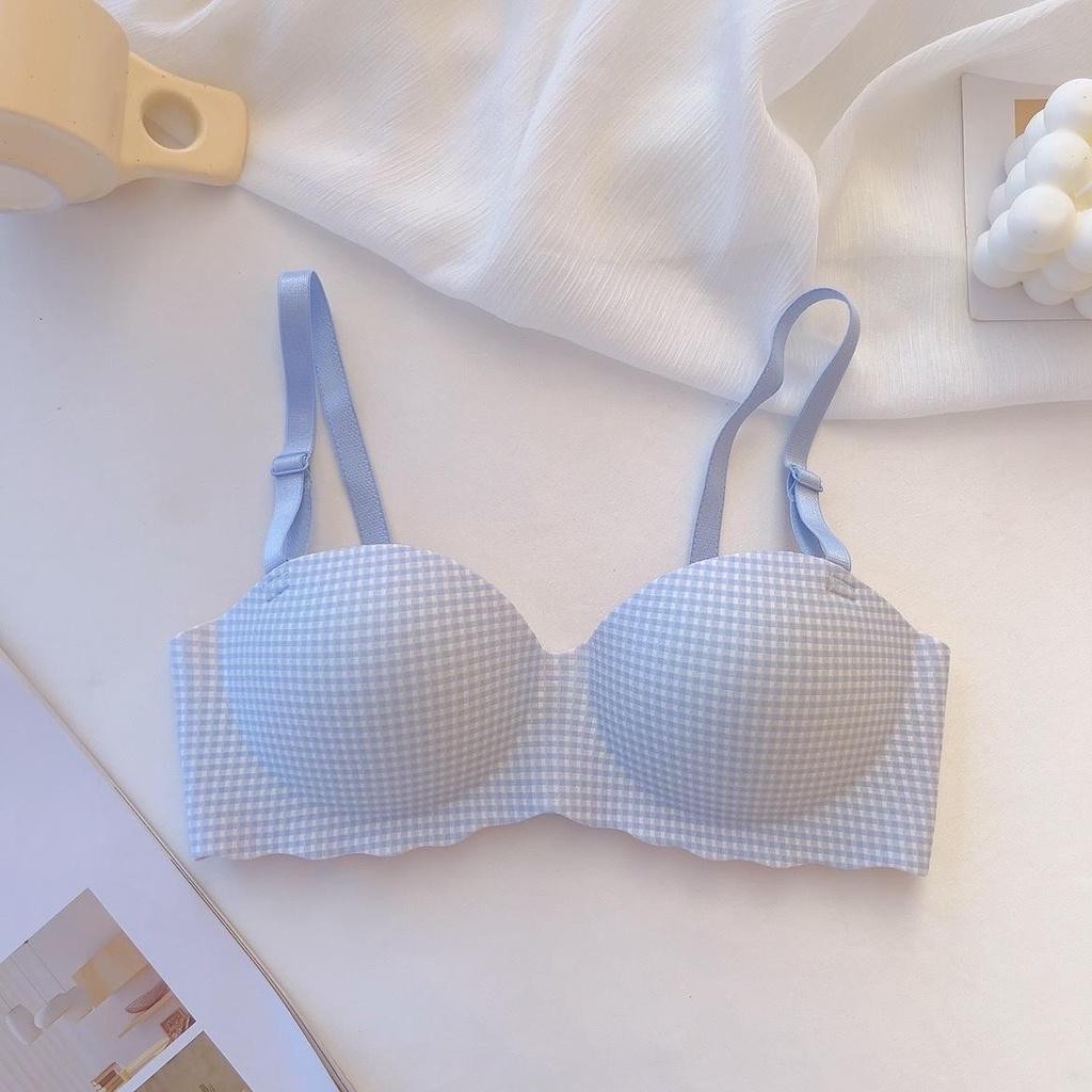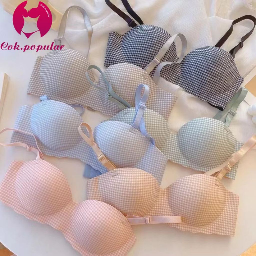 #195 เสื้อชั้นในแฟชั่น เสื้อชั้นในไร้โครง ไร้ขอบ สวมใส่สบาย ลายสก็อตสีพาสเทล น่ารักมาก เผื่อ1-2ไซร์ด้วยนะคะ
