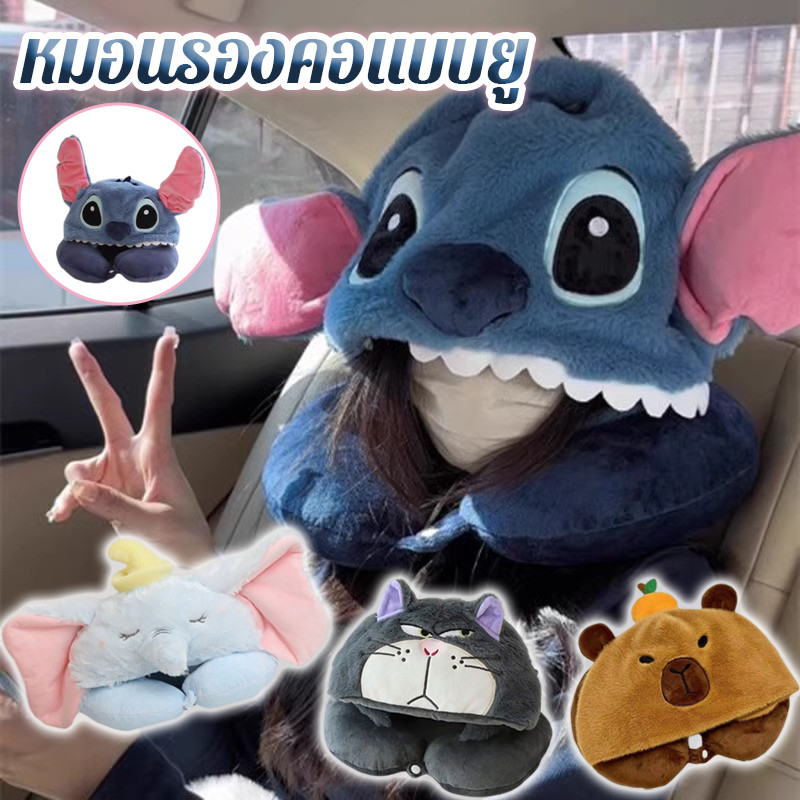 COD หมอนรองคอแบบยู พร้อมฮู้ด+ลายน่ารัก นุ่มสบาย+พกพาสะดวก สำหรับนอนกลางวัน