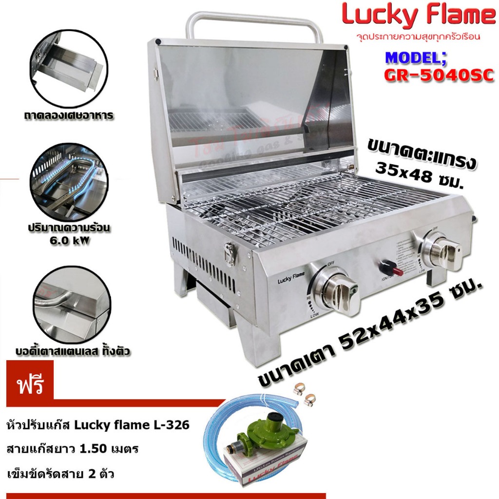 Lucky flame เตาย่าง มีฝาปิด GR-5040SC ฟรีชุดหัวปรับแรงดันต่ำ L-326+สายแก๊สยาว 1.5เมตร