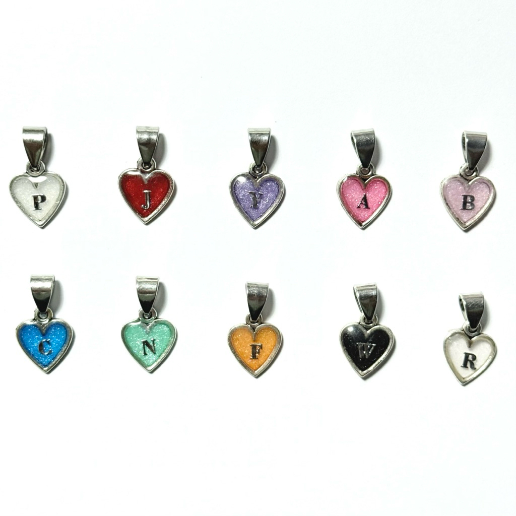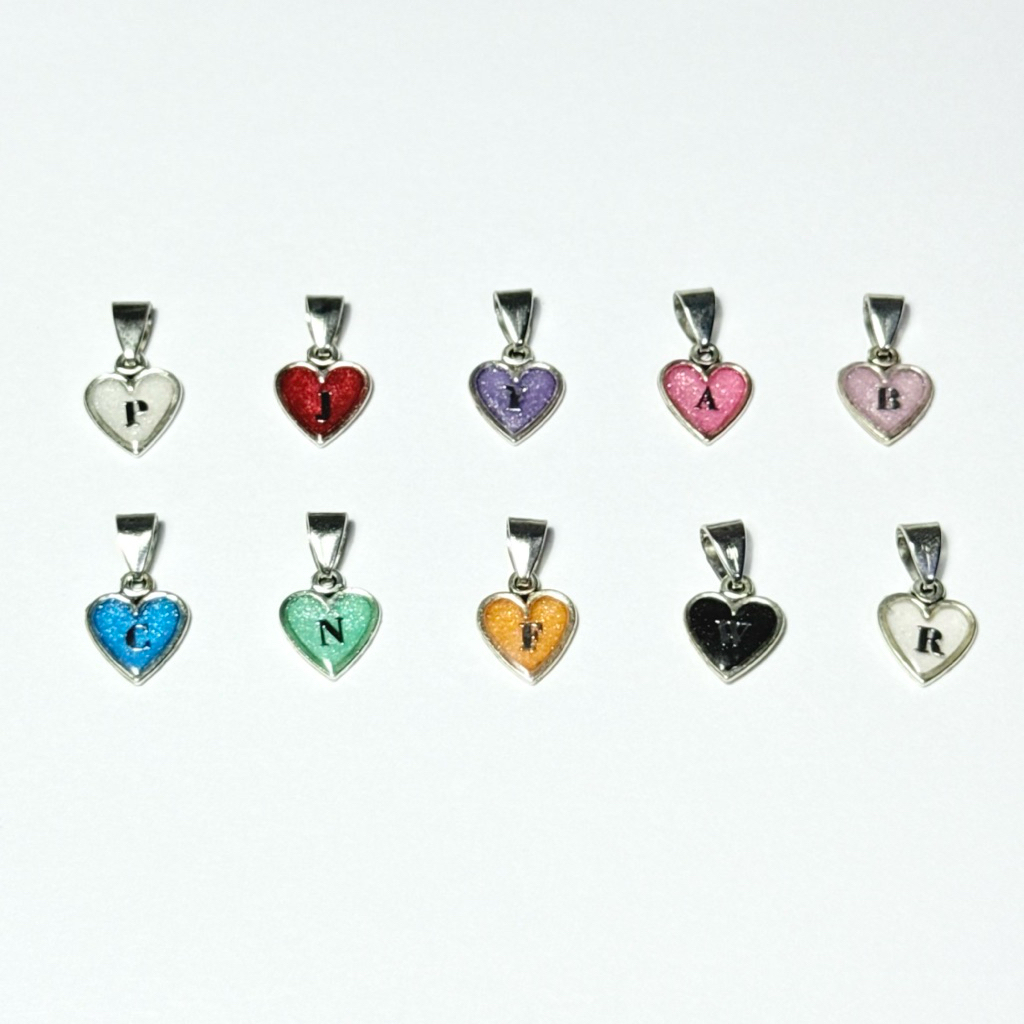 [ พร้อมส่ง ] จี้หัวใจเรซิ่นตัวอักษร A-Z ใส่ได้ 1 - 2 ตัวอักษร ( แจ้งสีได้ทางแชทหรือหมายเหตุ )