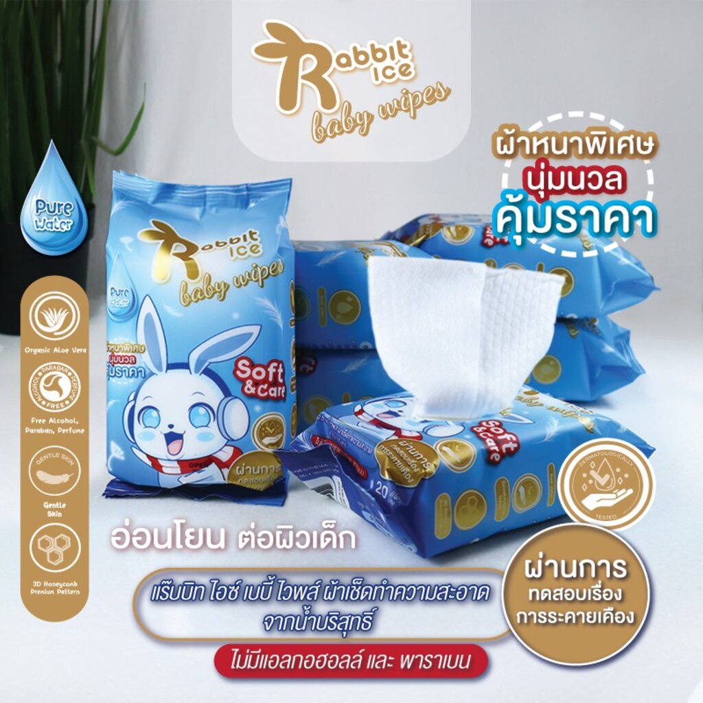 20 แผ่น/ซอง ถูกที่สุด✨ ทิชชู่เปียก 🔥 Rabbitice Baby wipes กระดาษทิชชู่เปียก 20 แผ่น / ซอง