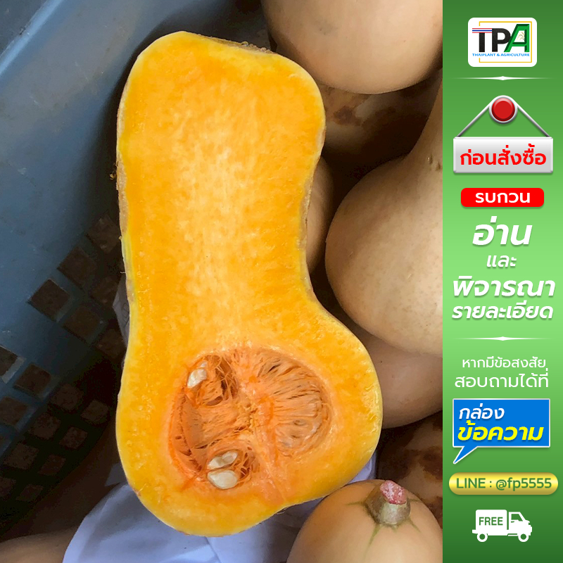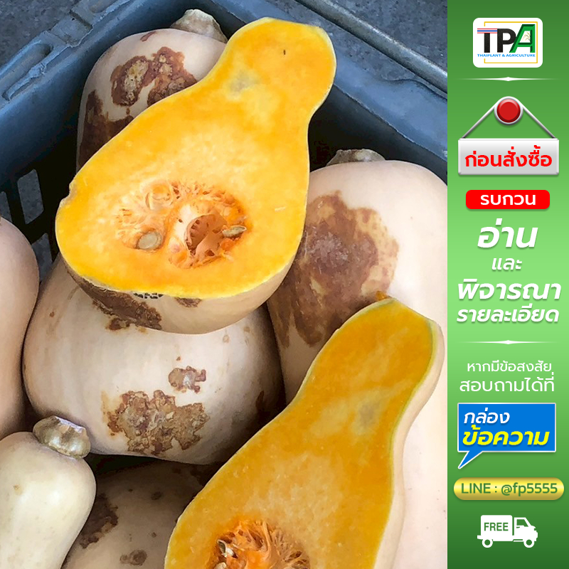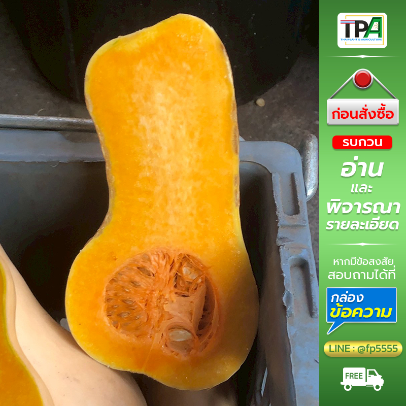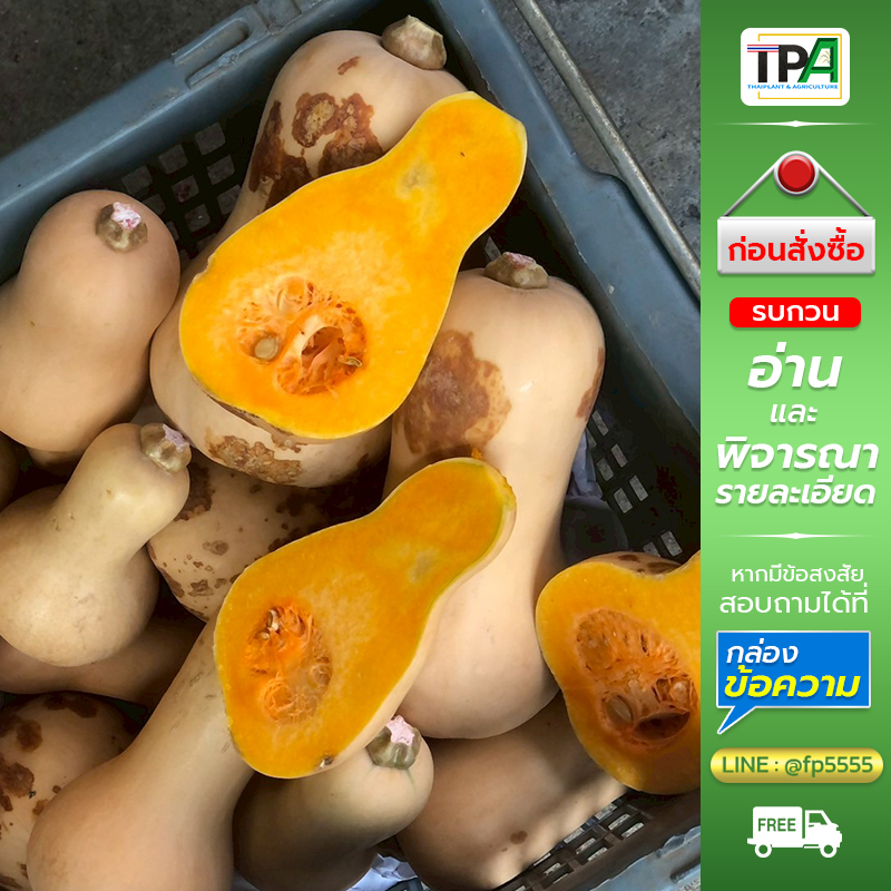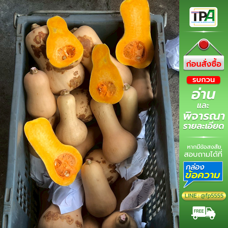 บัตเตอร์นัท ฟักทองบัตเตอร์นัท 01(ผลสด ผิวลาย มีแผล เนื้อสวย) 1,2,5 kg. - Butternut Squash (Fruit).
