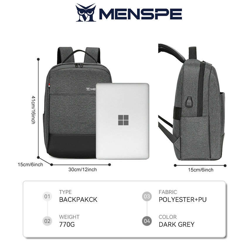 MENSPE ผู้ชาย กระเป๋าเป้สะพายหลังแล็ปท็อปกระเป๋าเป้สะพายหลังธุรกิจกระเป๋าเดินทางกันน้ําวิทยาลัยกระเป๋าสบายๆกระเป๋าสะพาย