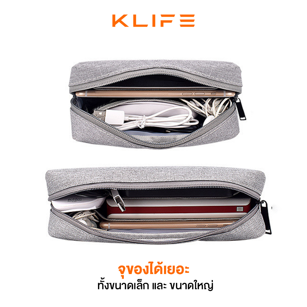 กระเป๋าจัดระเบียบเดินทาง กระเป๋าเก็บสายชาร์จ หูฟัง KLIFE MULTIPURPOSE กันกระแทก กันน้ำ ใส่ได้เยอะ