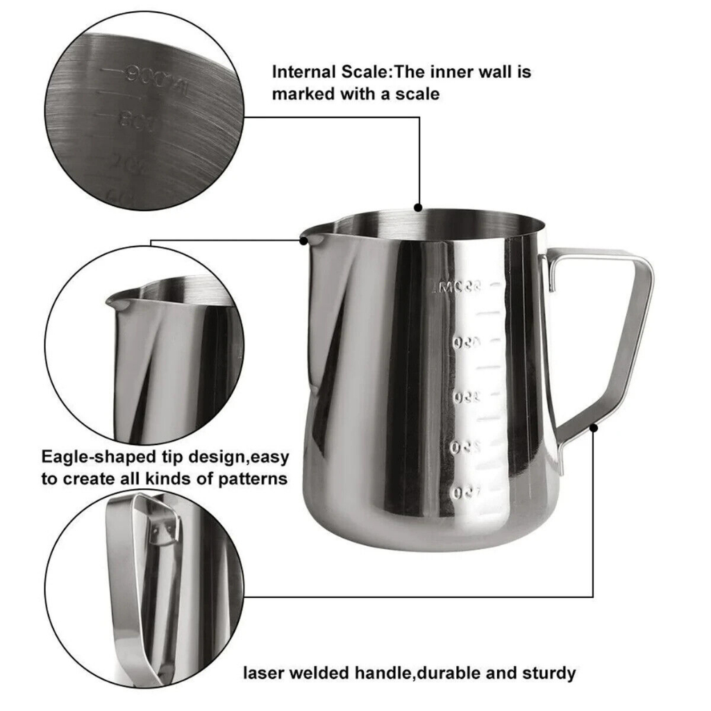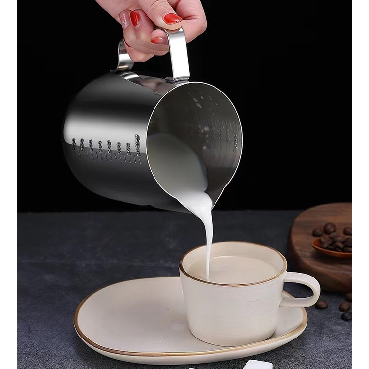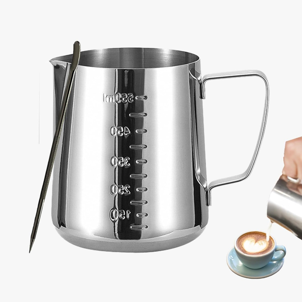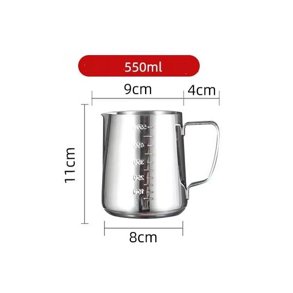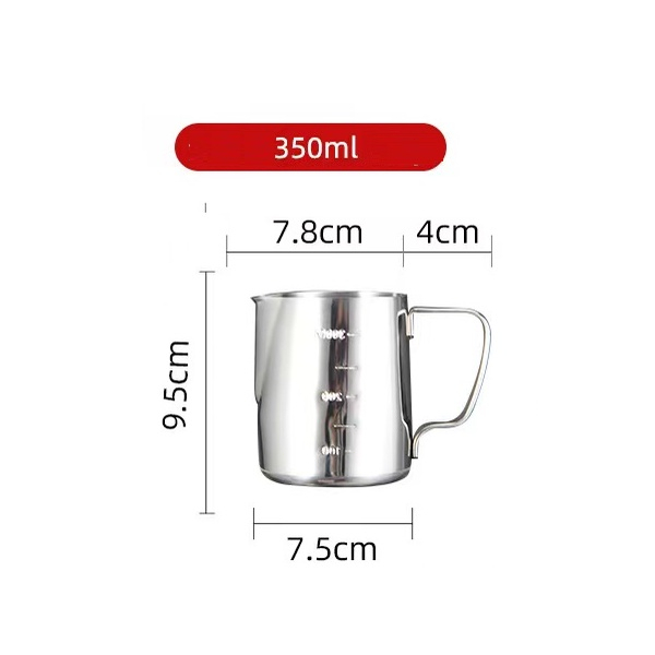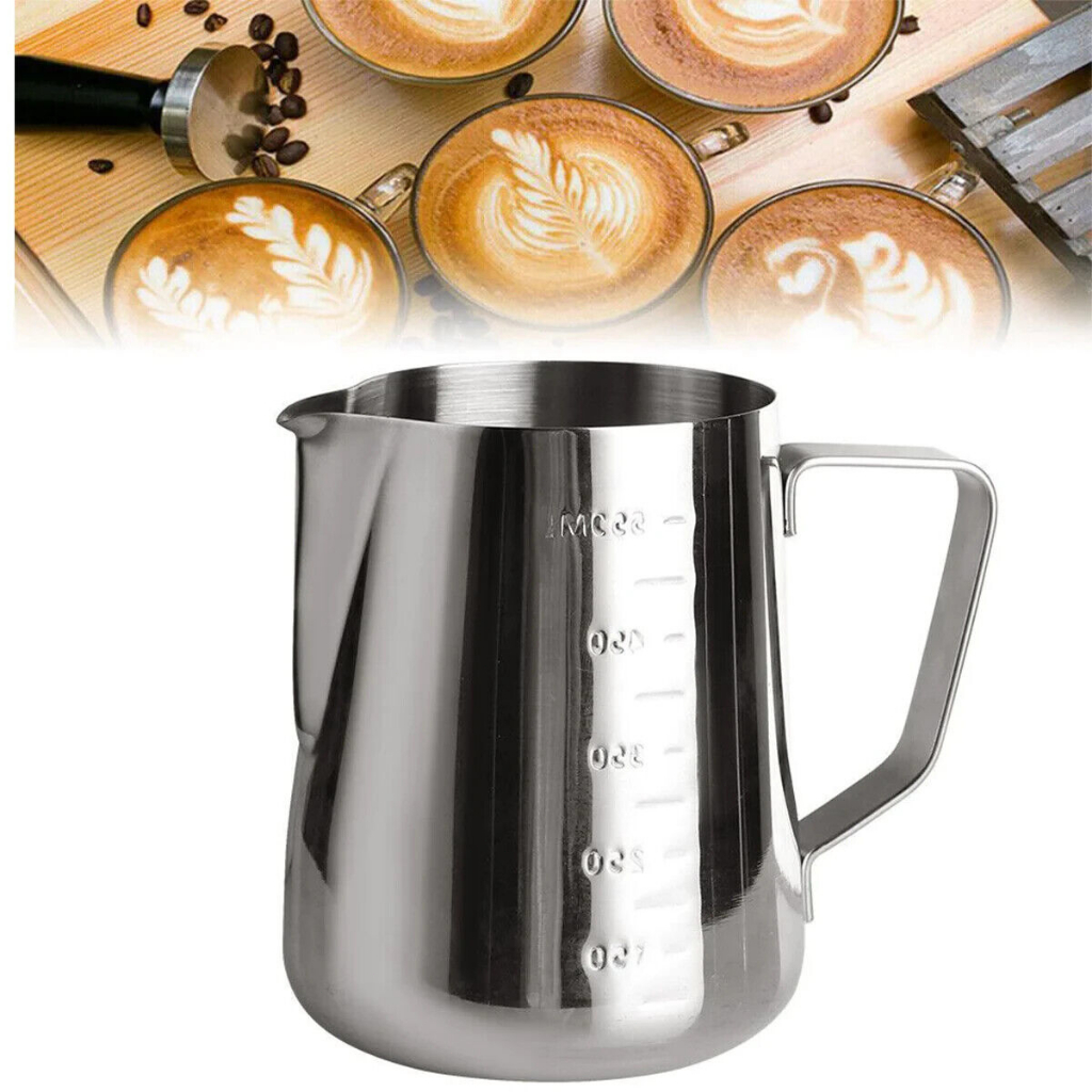 เหยือกตีฟองนม สีเงิน 350ml/550mlพิชเชอร์ ถ้วยตีฟองนม สแตนเลส Stainless Milk Pitcher สเตนเลส SUS304