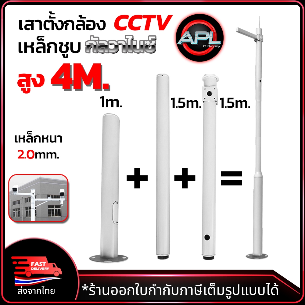 Apollo เสาตั้งกล้องวงจรปิด CCTV พร้อม ขาตั้งกล้องวงจรปิดเหล็ก สูง 4m. เหล็กชูบกัลวาไนซ์ แบบ 3ท่อน