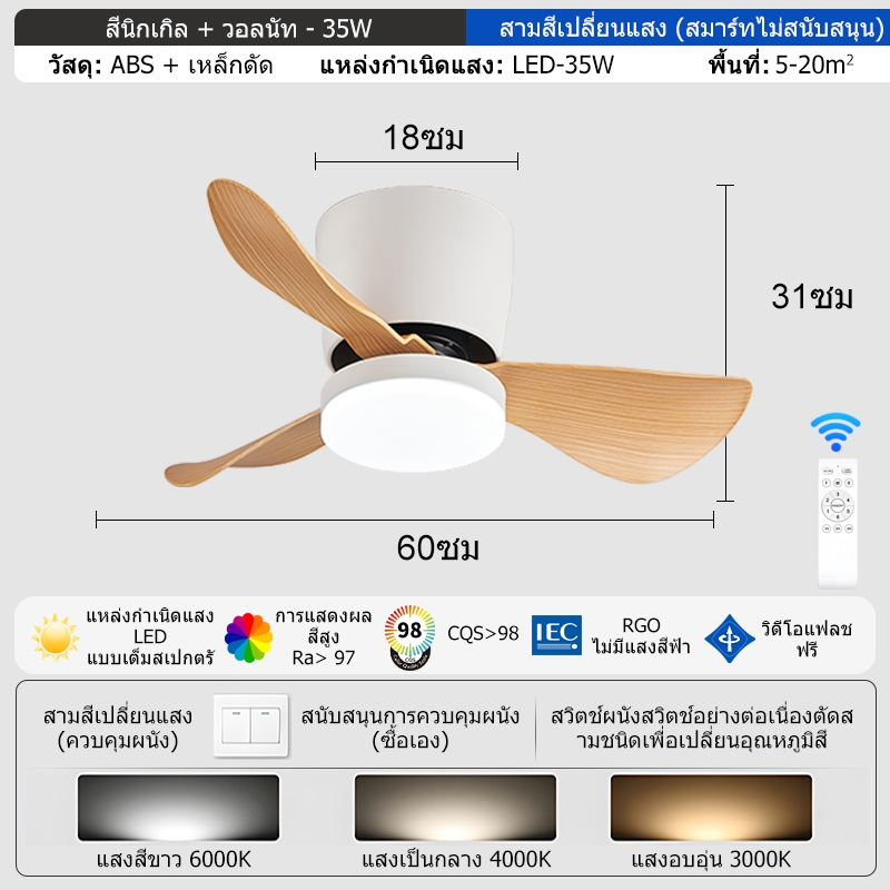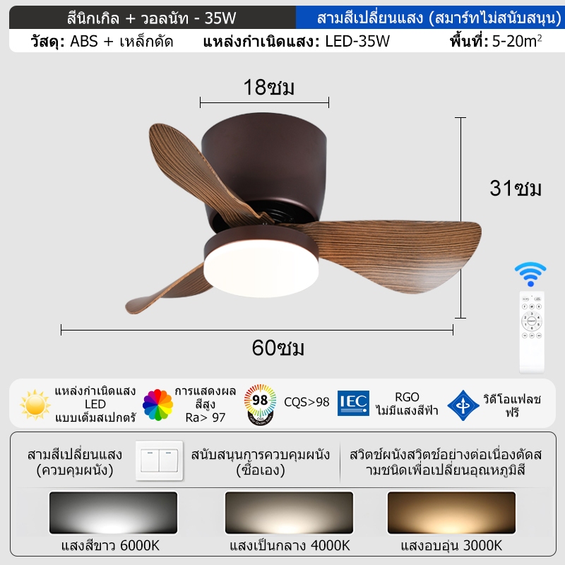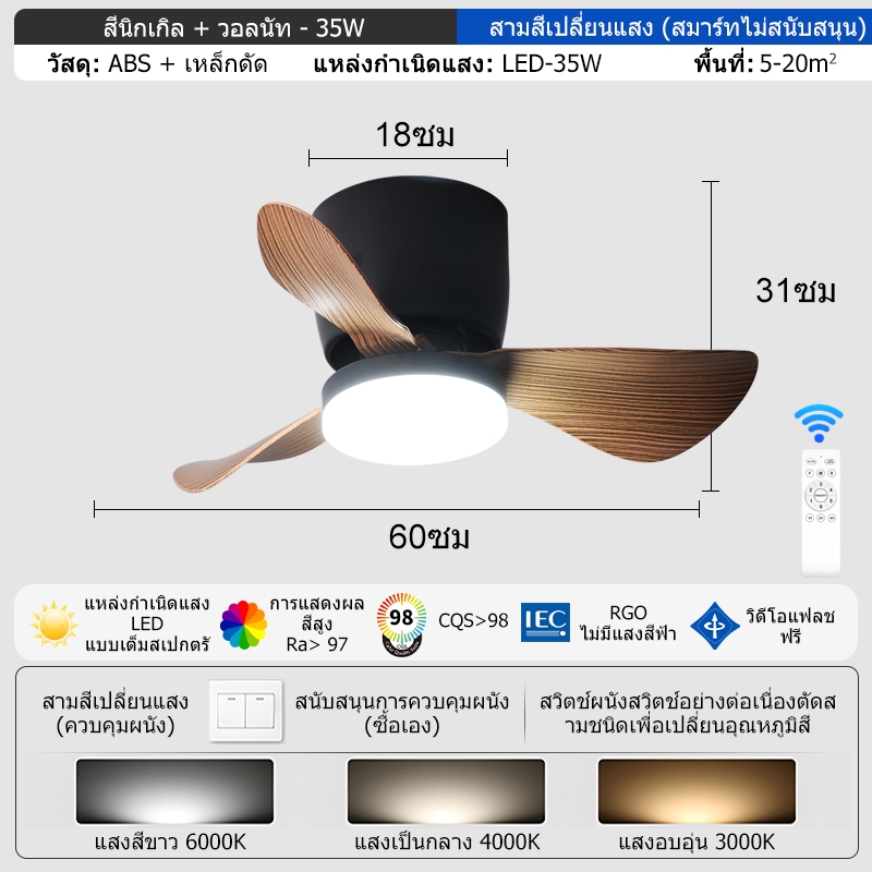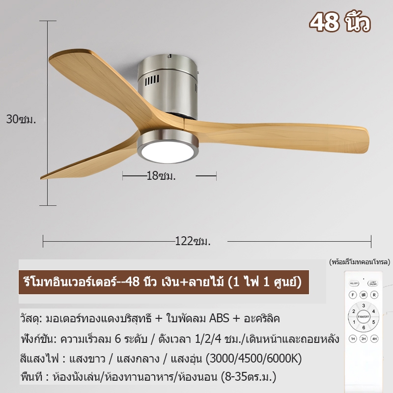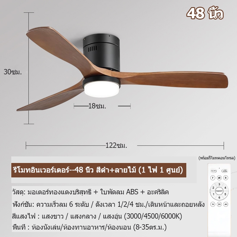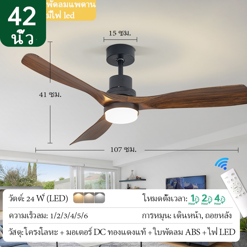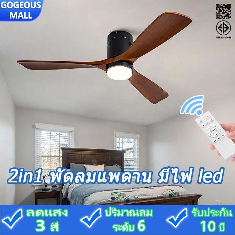 GOGEOUS พัดลมเพดาน มีไฟ led โคมไฟพัดลม นอร์ดิก พัดลมเพดาน 42/48 นิ้ว พัดลมโคมไฟ 3 ใบมีด ไฟ3สี ไฟพัดลม เพดานพัดลมอุตสาหกรรม DC มอเตอร์ พัดลมเพดาน โ คมไฟพัดลมเพดาน พร้อมรีโมทควบคุม ceiling fan with light
