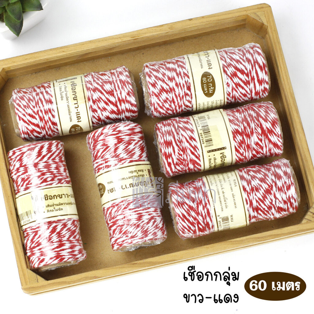 ( 1 ม้วน ) เชือกกลุ่ม ขาวแดง, ขาว, ครีม เชือกไปรษณีย์ ยาว 60 เมตร MTFavourgift