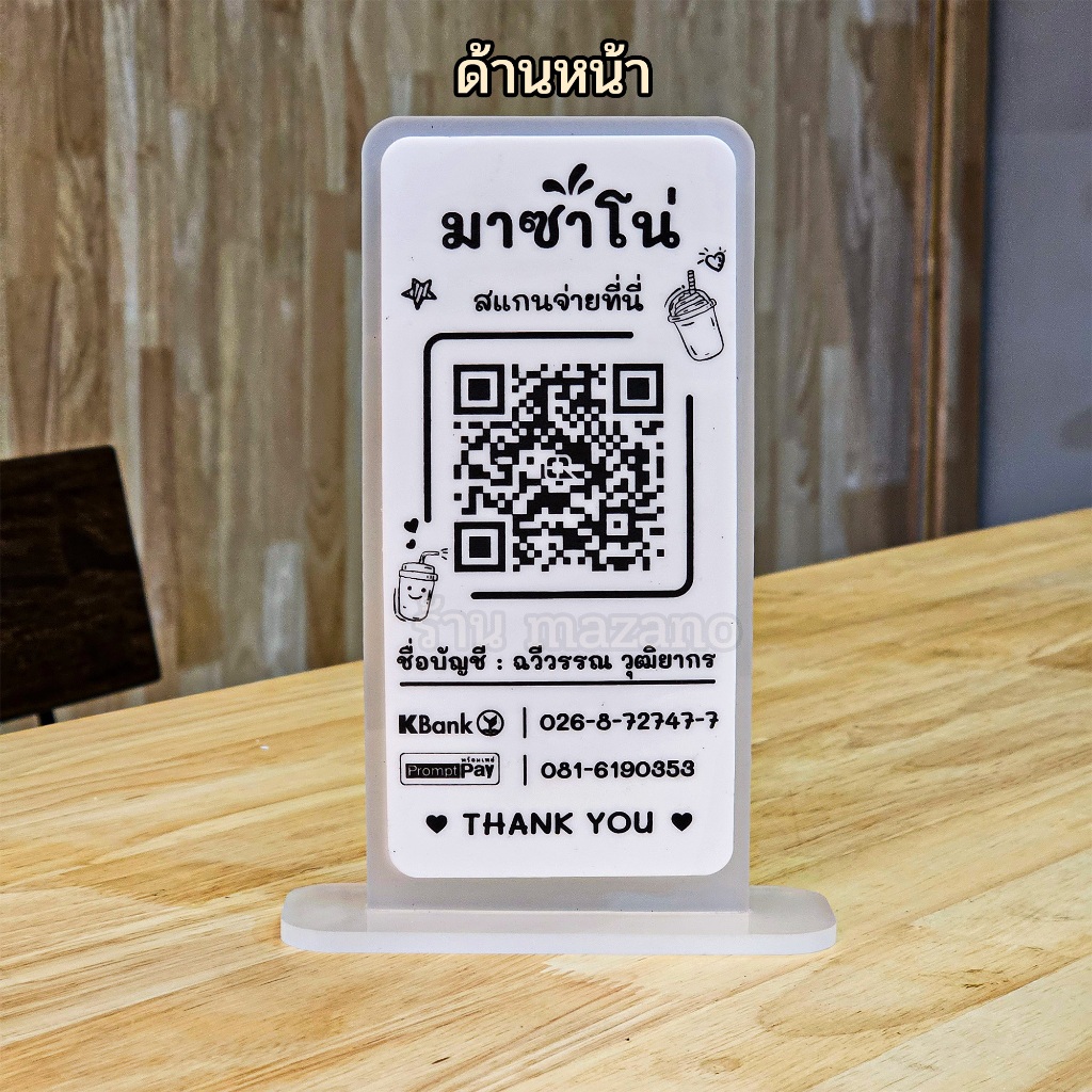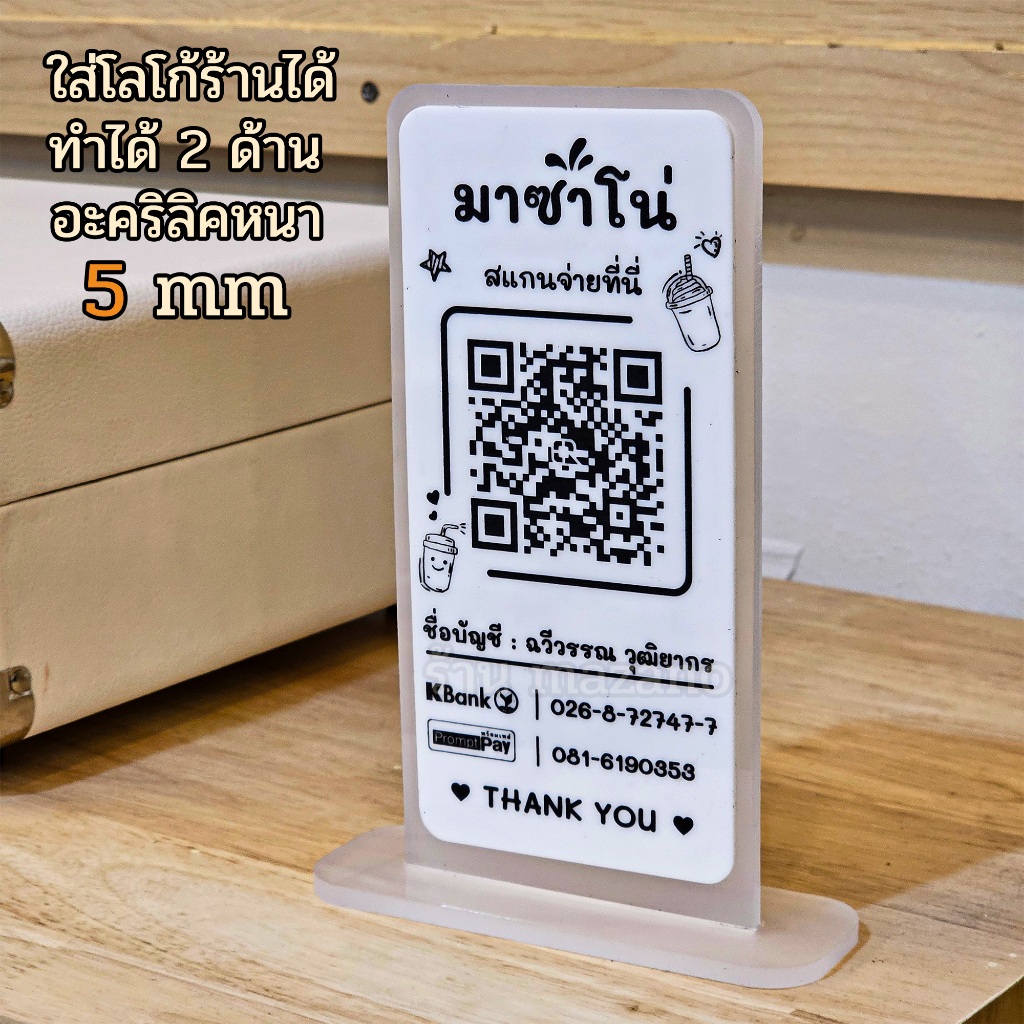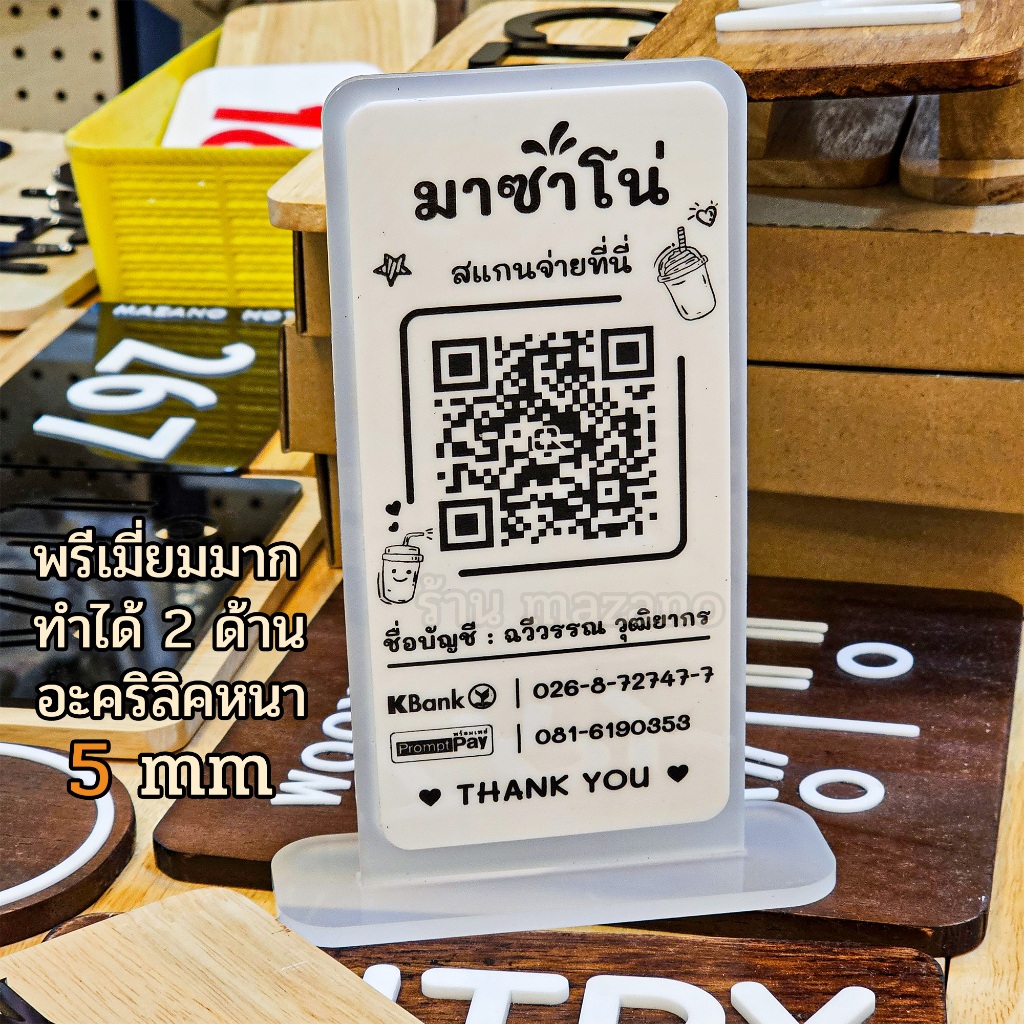 2 Layers ป้ายแสกนจ่าย2ชั้น พร้อมเพย์ ป้ายสแกนรับชำระเงินผ่าน QR Code ดีไซน์หรู อะคริลิคฝ้าหนา 5 mm ใส่โลโก้ได้