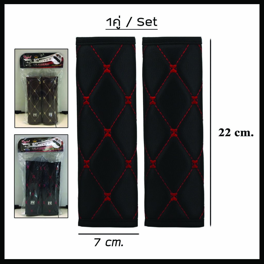 ROYAL R หุ้มเข็มขัดนิรภัย 2 ชิ้น หนัง PVC ลาย VIP 6D Seat Belt Pad ปลอกหุ้มเซฟตี้เบลท์ หุ้มเบลท์ ผลิตในประเทศไทย 04-VR |
