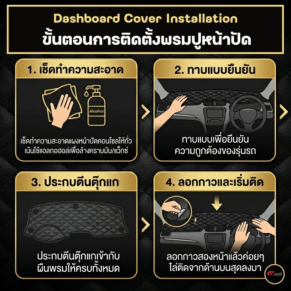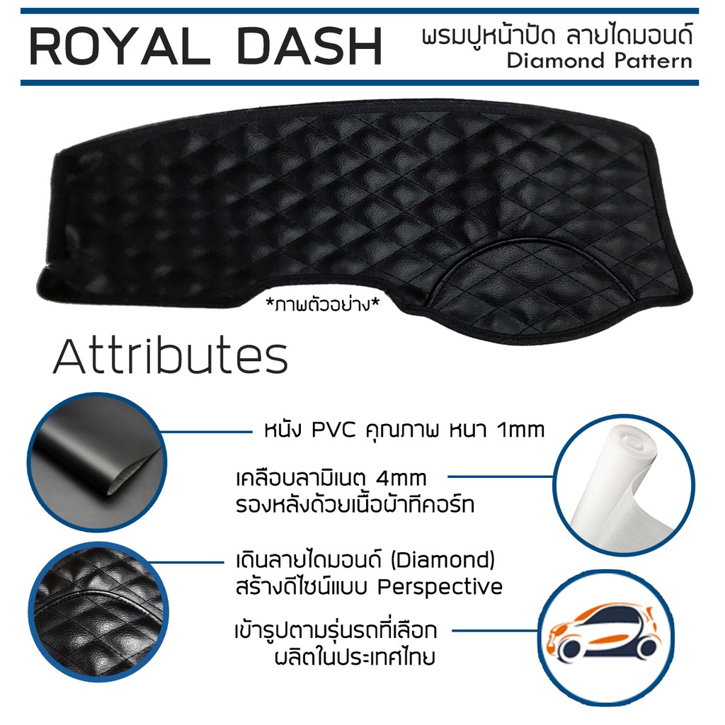 ROYAL DASH พรมปูหน้าปัดหนัง Mirage ปี 2012-ปัจจุบัน | มิตซูบิชิ มิราจ MITSUBISHI คอนโซลหน้ารถยนต์ ลายไดมอนด์ Dashboard |