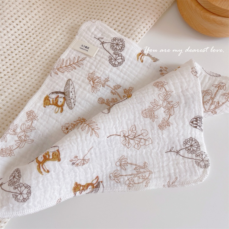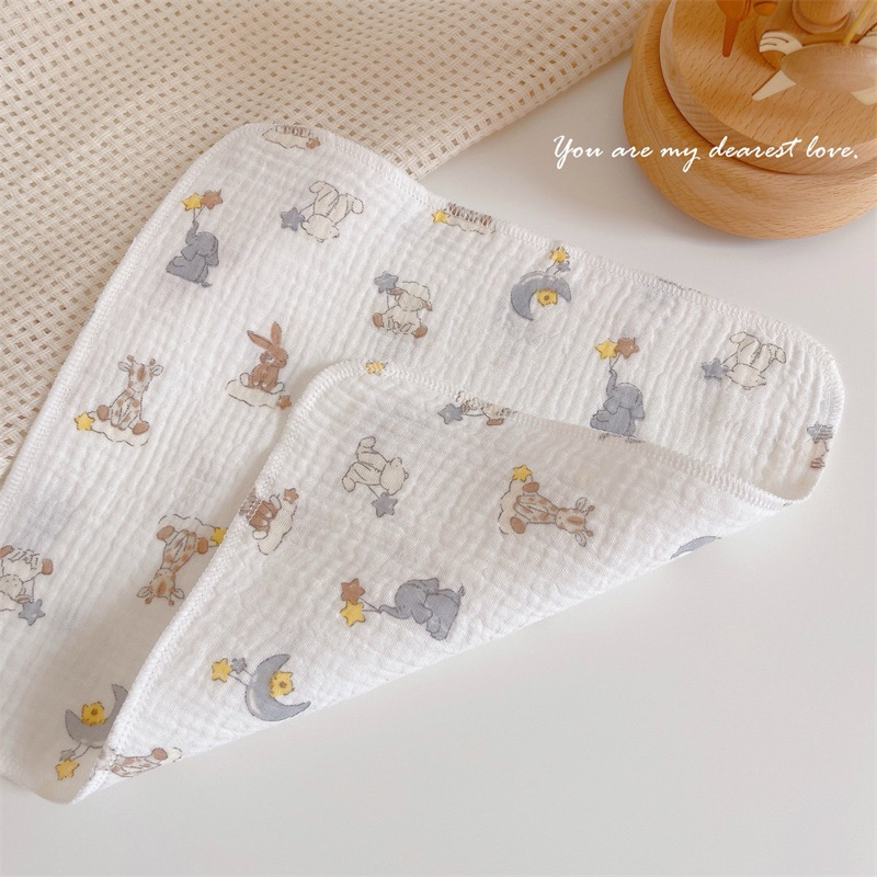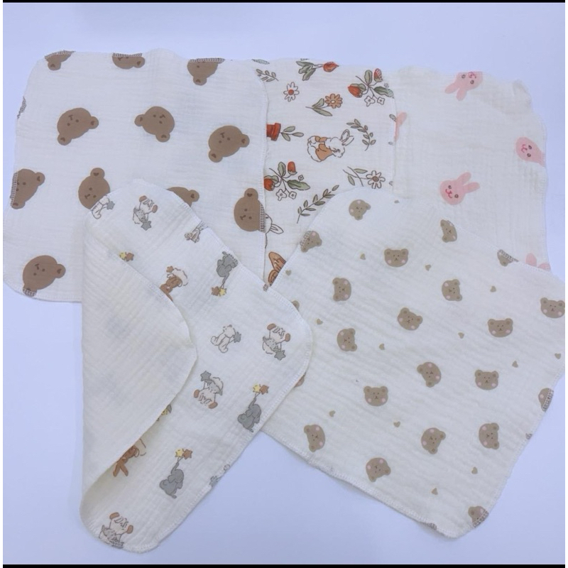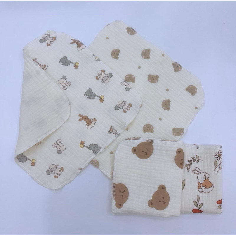 ผ้าเช็ดหน้า ผ้าซับน้ำลาย ผ้ามัสลิ นทอย่น2ชั้น25x25cm