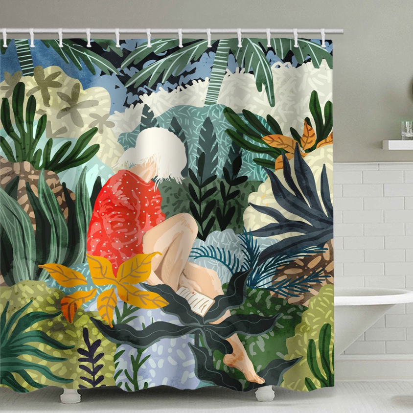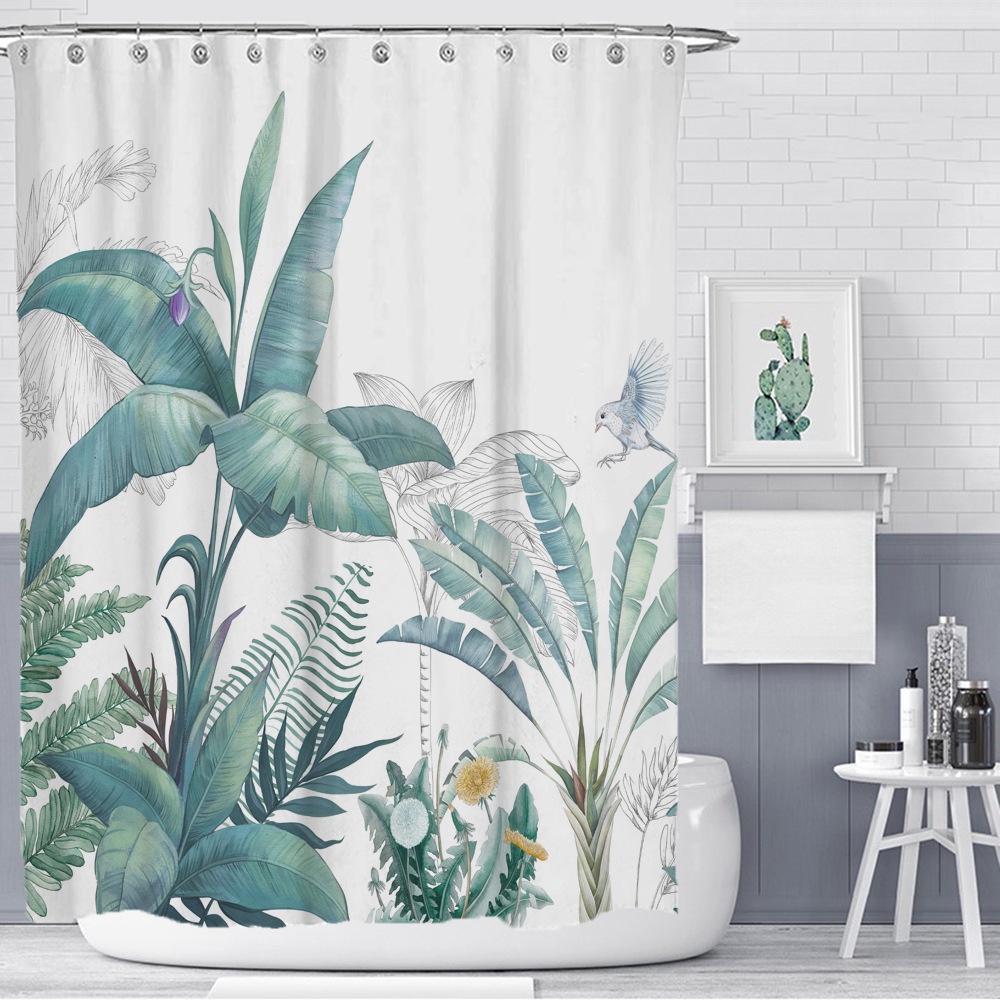 ม่านอาบน้ําห้องน้ําม่านอาบน้ํากันน้ํากันความชื้นพืชเมืองร้อนชุดม่านอาบน้ําใบเขียวพิมพ์