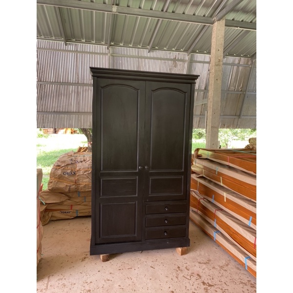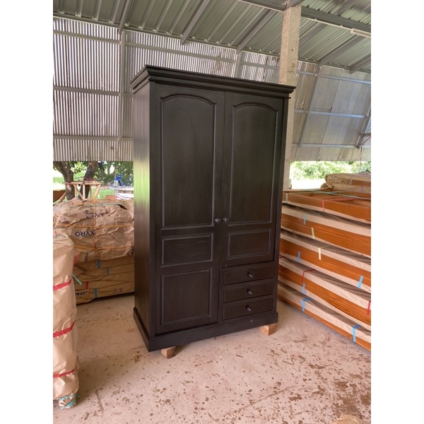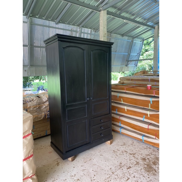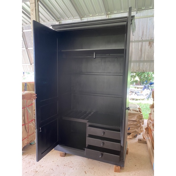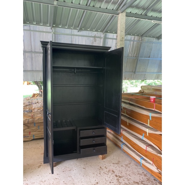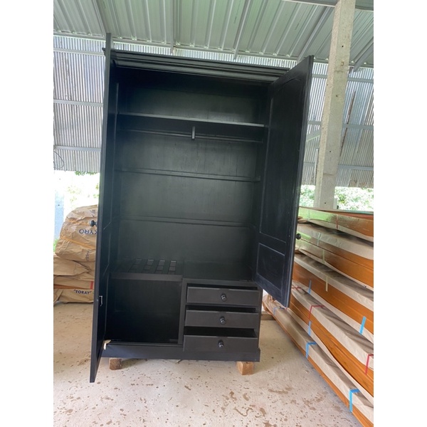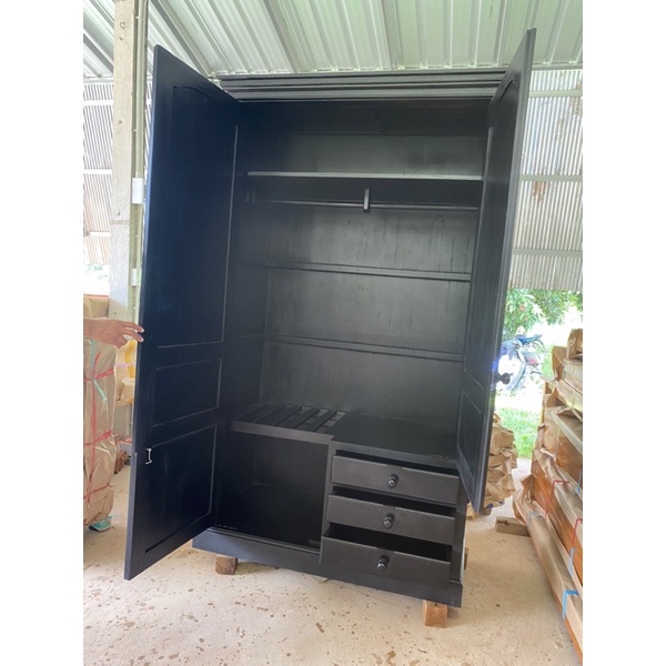ตู้เสื้อผ้าบานเปิด120ดำด้านเงาไม้สักแท้100%(((ส่งฟรียกเว้นภาคใต้มีค่าจัดส่ง))