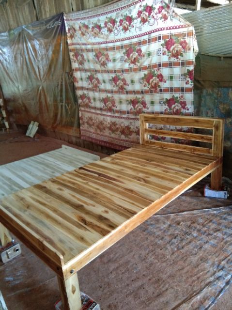 เตียงนอน หัวปาด 3-3.5 ฟุตไม้สักแท้100% (((ส่งฟรียกเว้นภาคใต้มีค่าจัดส่ง))