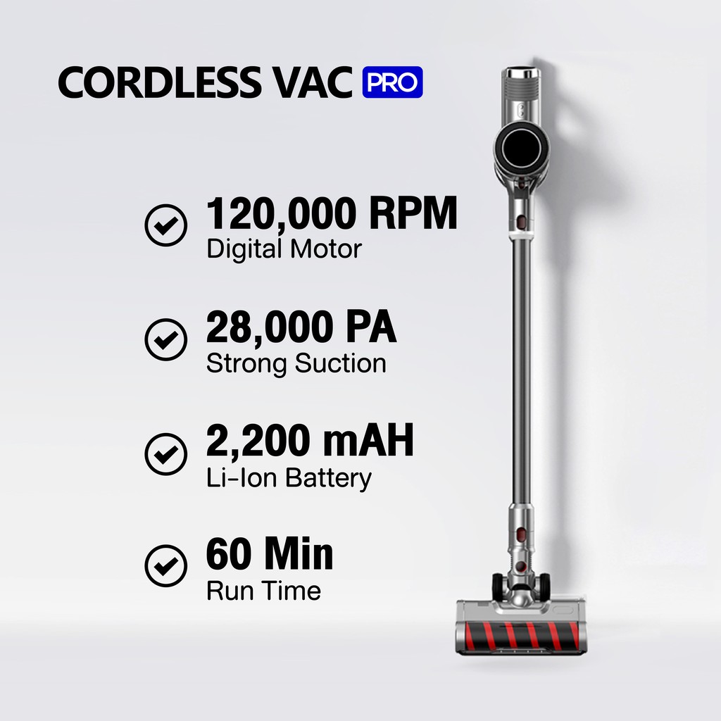 Mister Robot เครื่องดูดฝุ่น เครื่องดูดฝุ่นไร้สาย รุ่น Cordless Vac Pro มาพร้อมกับหัวอุปกรณ์เสริม 5 รูปแบบการใช้งาน