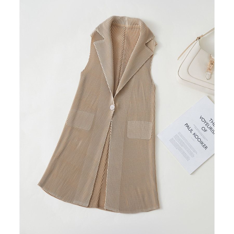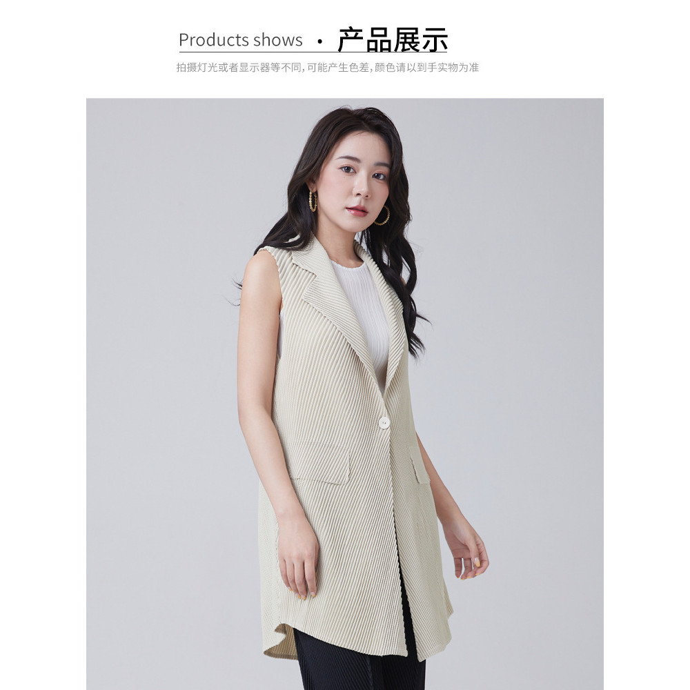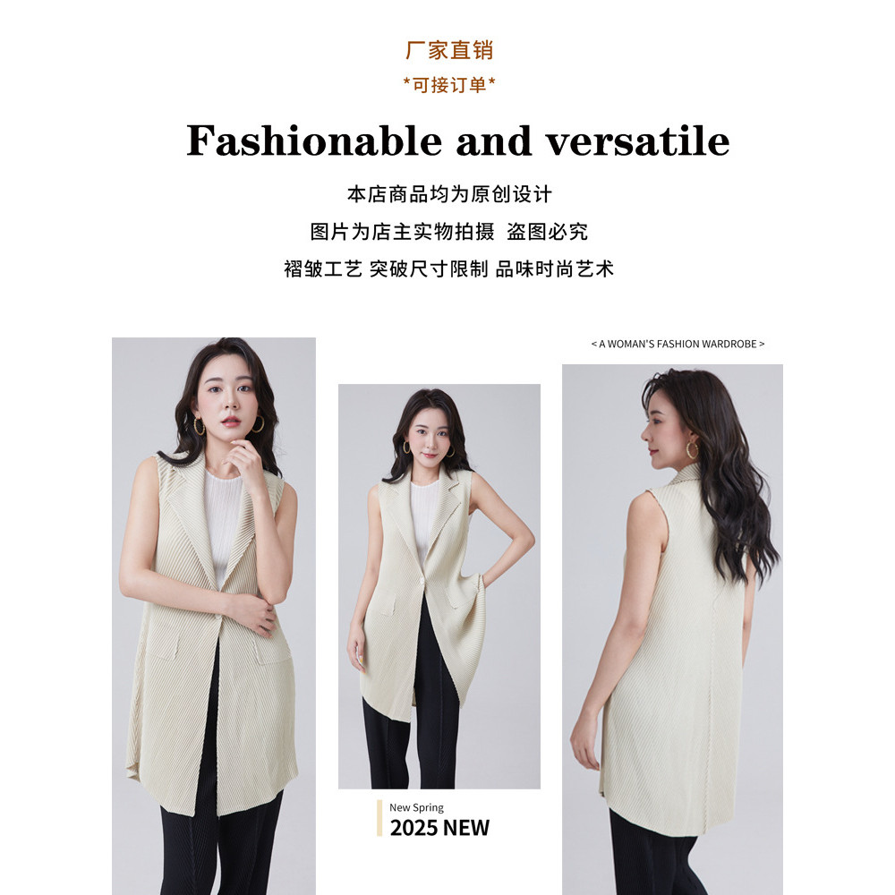 จีบ 2025 ฤดูใบไม้ร่วงแขนกุดทุกการแข่งขันสีทึบอารมณ์แฟชั่นสบายๆที่เรียบง่ายพร็อพเสื้อกั๊กแจ็คเก็ต 2025