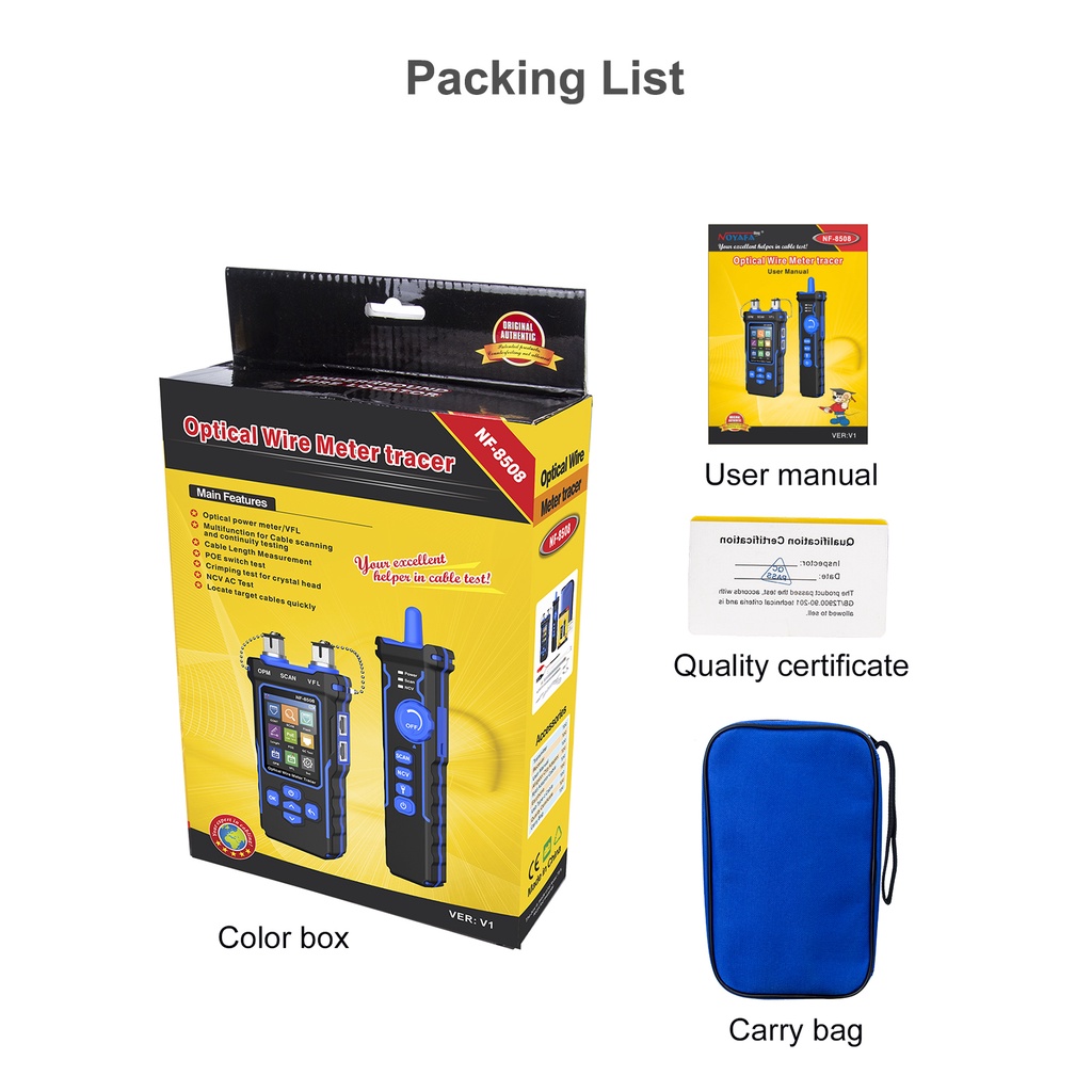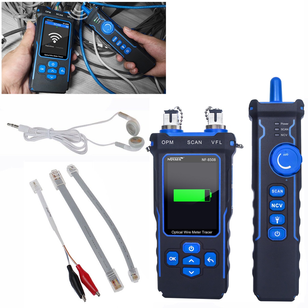 NOYAFA NF-8508 เครื่องทดสอบสายเคเบิลเครือข่าย LAN เครื่องทดสอบมิเตอร์ไฟ LCD วัดความยาว Wiremap เครื่องทดสอบตัวติดตามสายเคเบิล