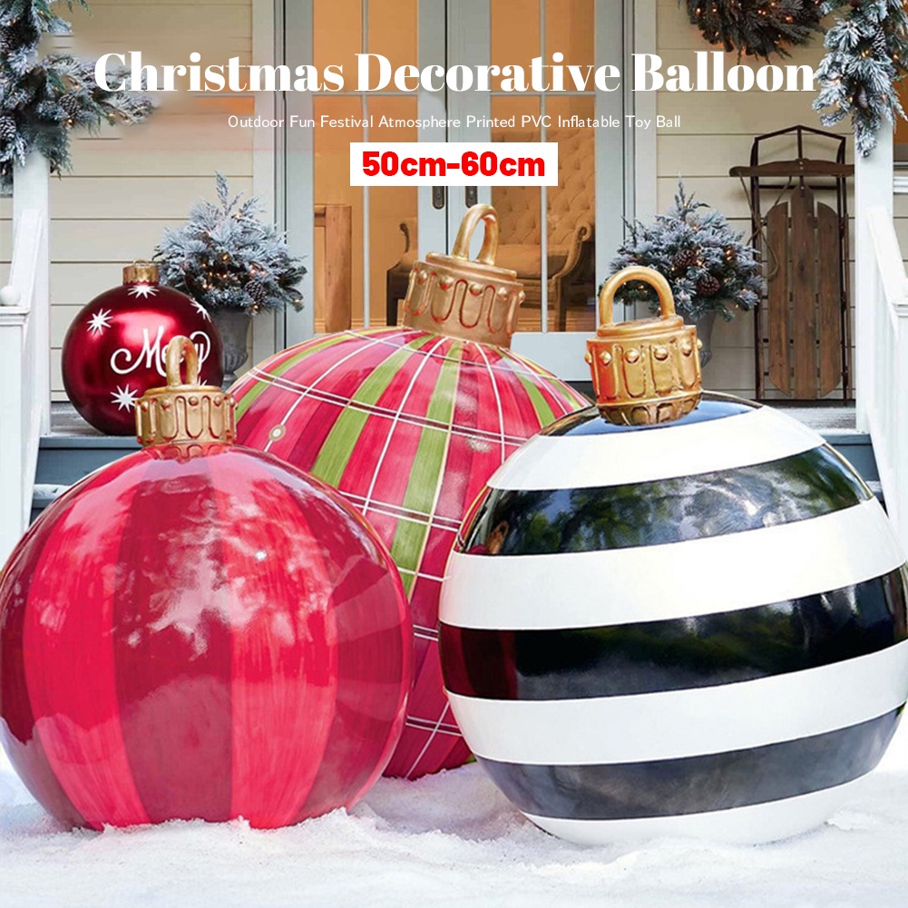 [พร้อม] 60 ซม. ลูกบอลตกแต่งคริสต์มาสแบบพองได้ ของตกแต่งวันคริสต์มาส บอลลูน 60 ซม. พิมพ์กลางแจ้ง Airballoon PVC ของเล่นเป่าลมลูกบอลงานฝีมือ