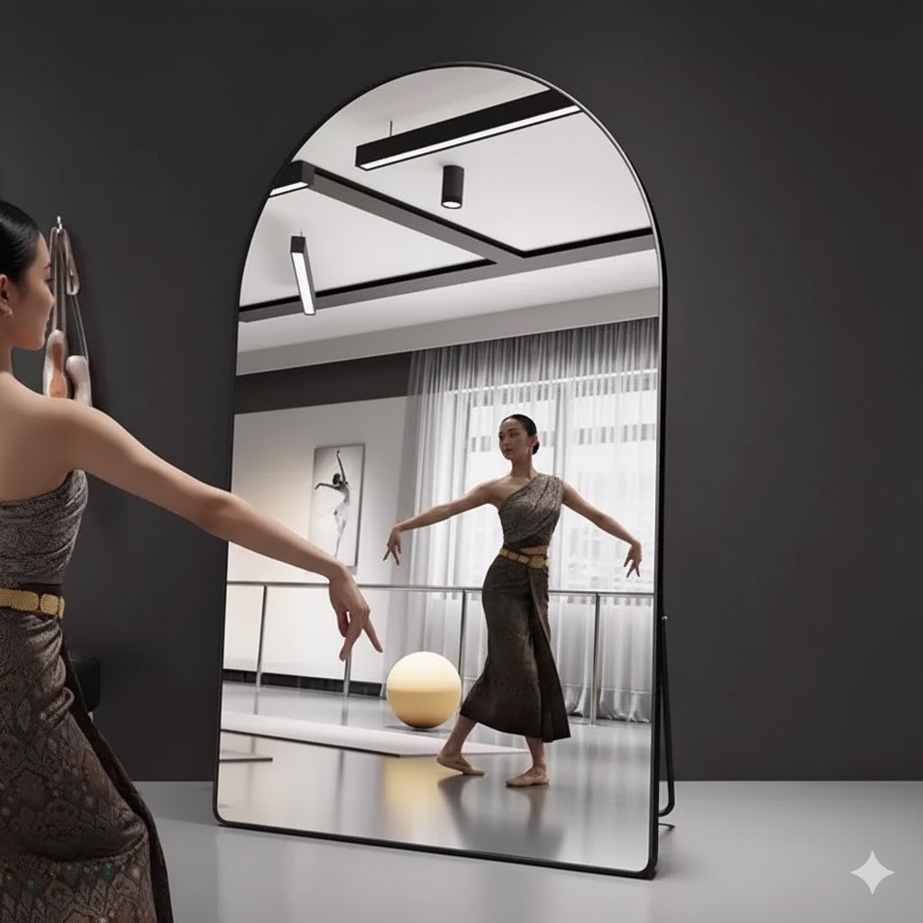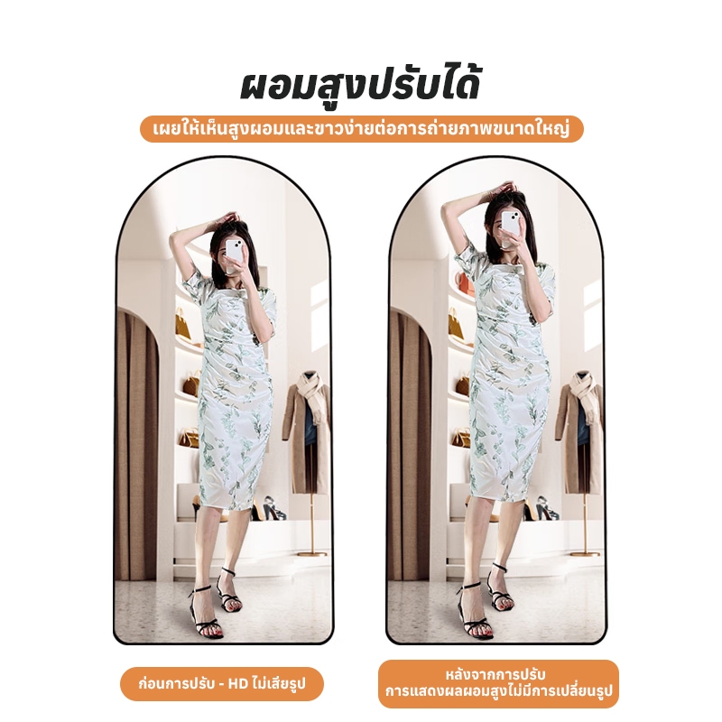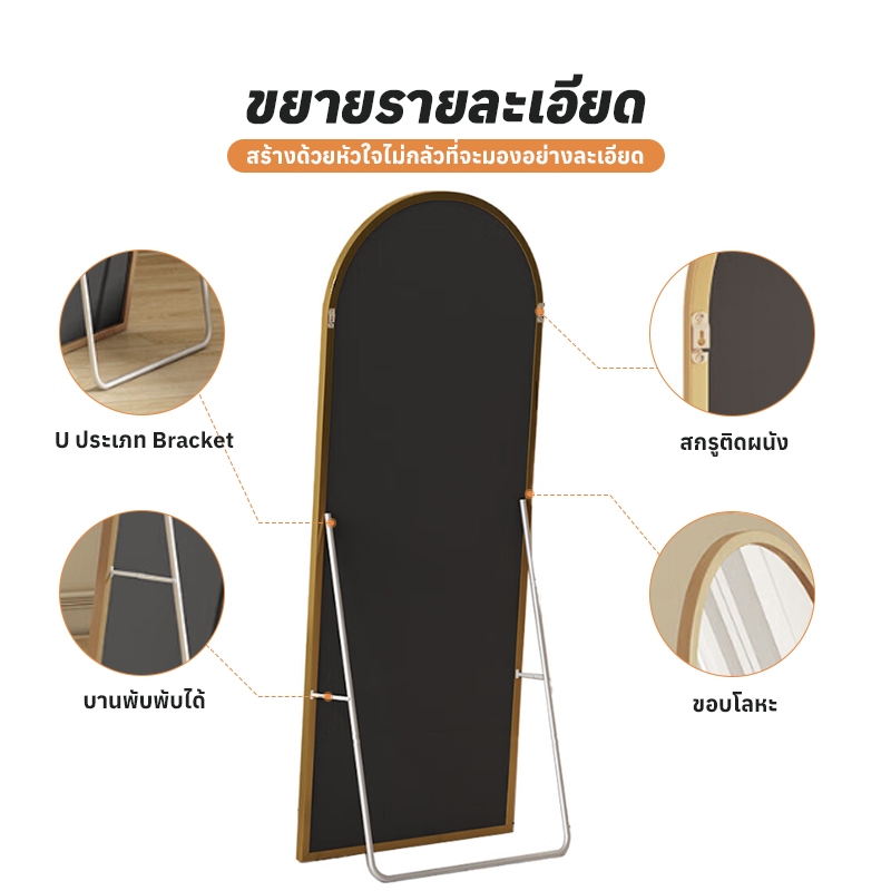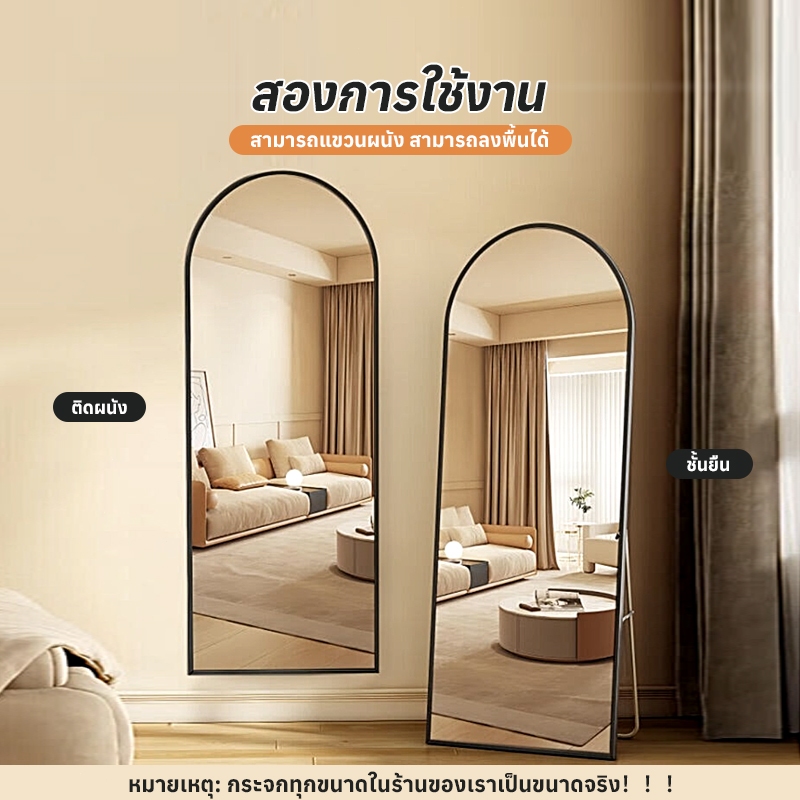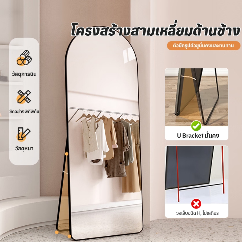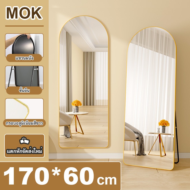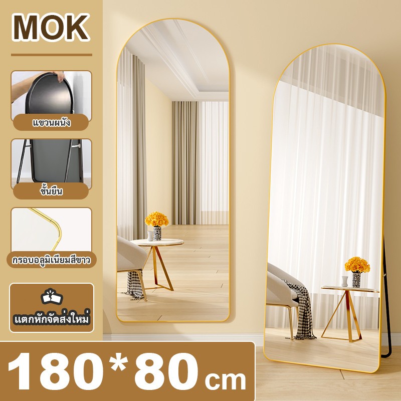 【170-180cm】MOOM กระจกเงา แบบเต็มตัว กระจกเต็มตัว ติดเพดาน และผนัง กระจกยาวเต็มตัว ขอบโลหะ พร้อมขาตั้ง กระจกกันระเบิด กระจกยาว