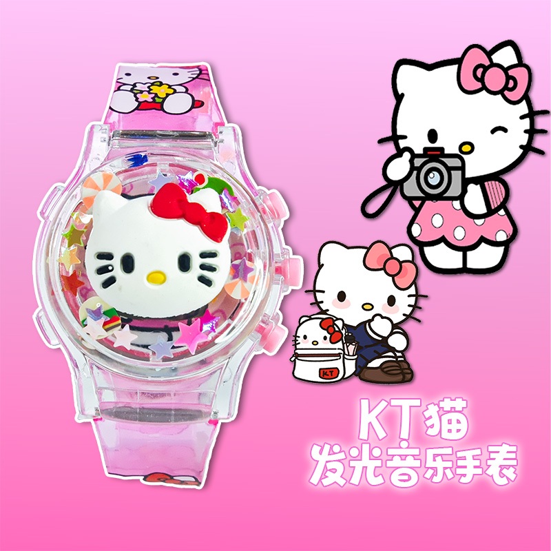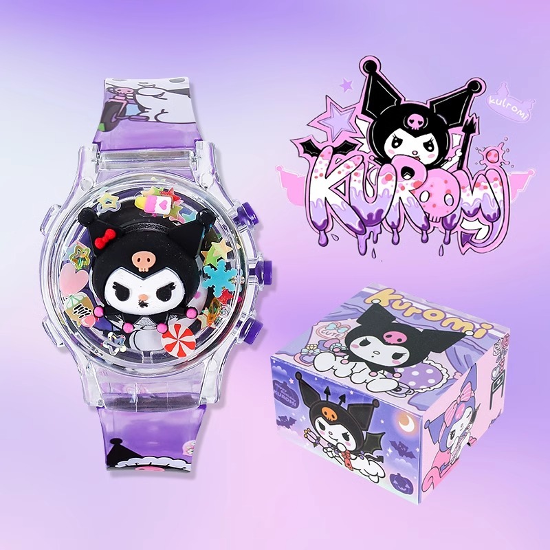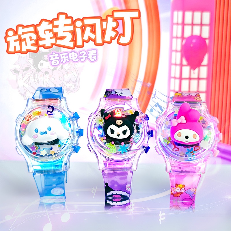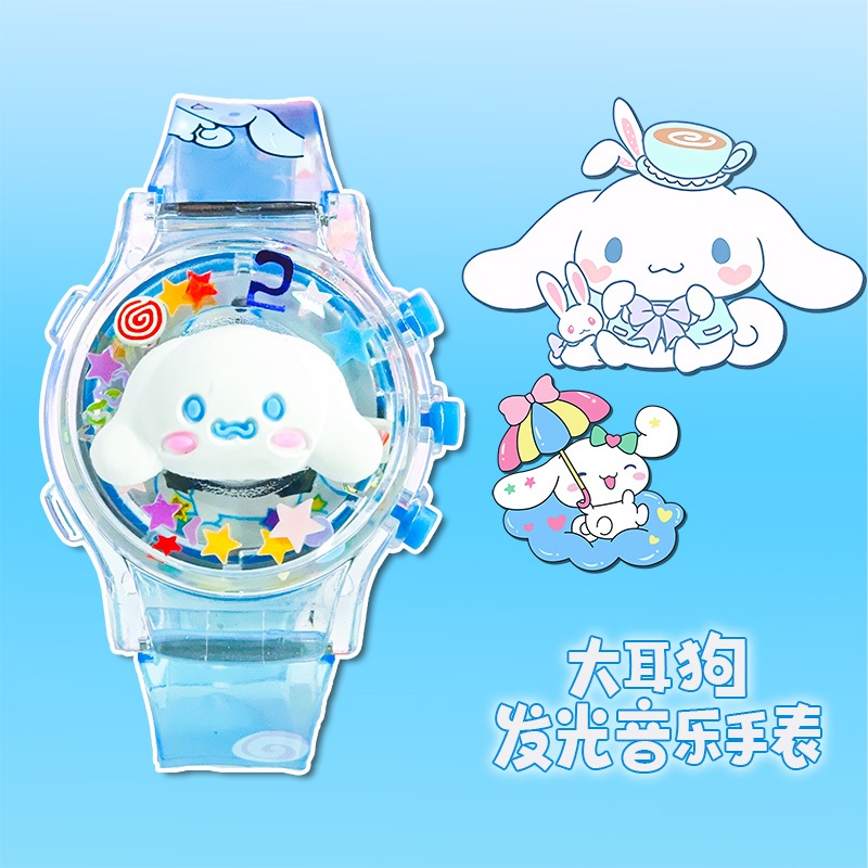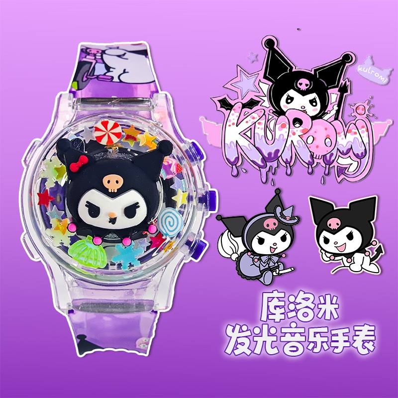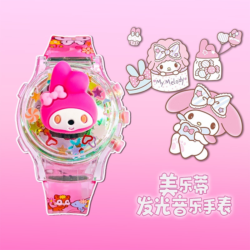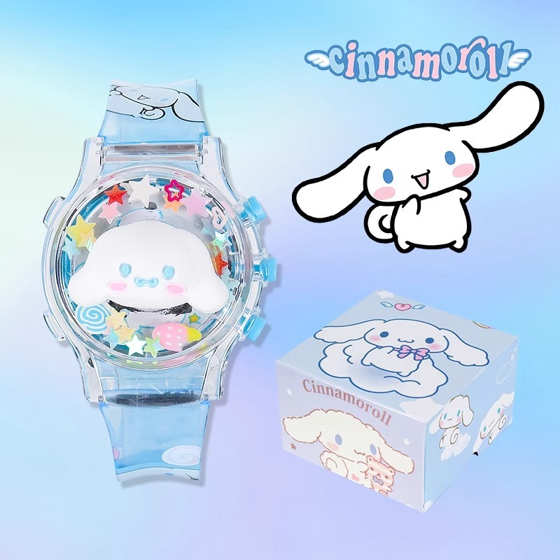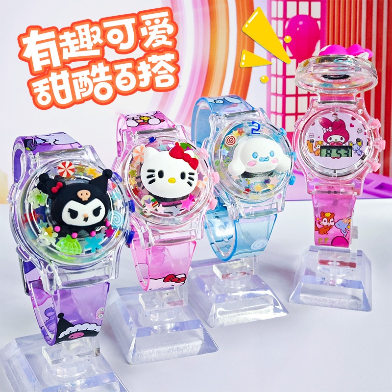 นาฬิกาข้อมืออิเล็กทรอนิกส์ ลายการ์ตูน Sanrio kuromi melody Cinnamoroll Stellalou แบบเรืองแสง เหมาะกับของขวัญ สําหรับเด็ก