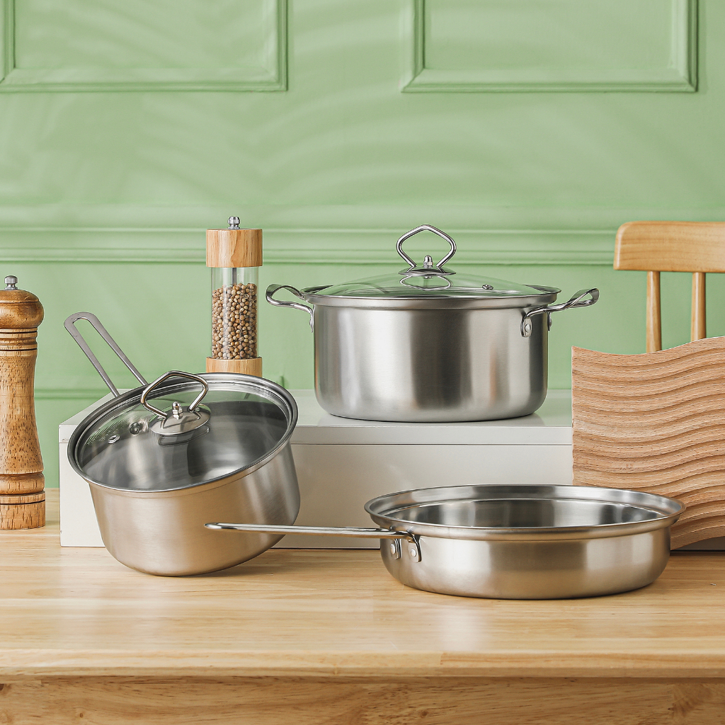 OMC ชุดหม้อ 3 ใบ ขนาด 18 - 22 - 24 ซม. หม้อ หม้อด้าม ชุดหม้อด้าม เครื่องครัว