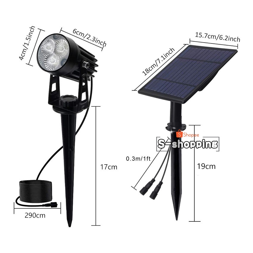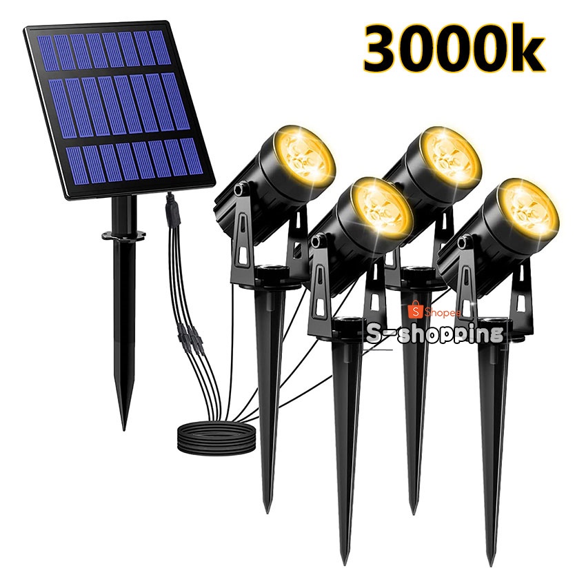 TS-S4504 Solar Spotlights 3LEDx4 3000K โคมไฟปักสนามโซล่าเซลล์