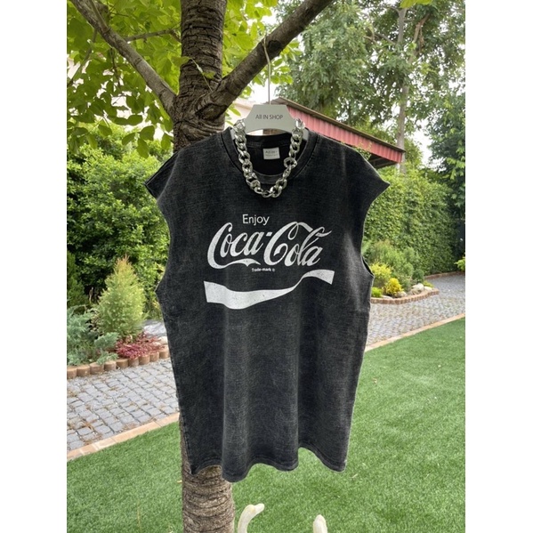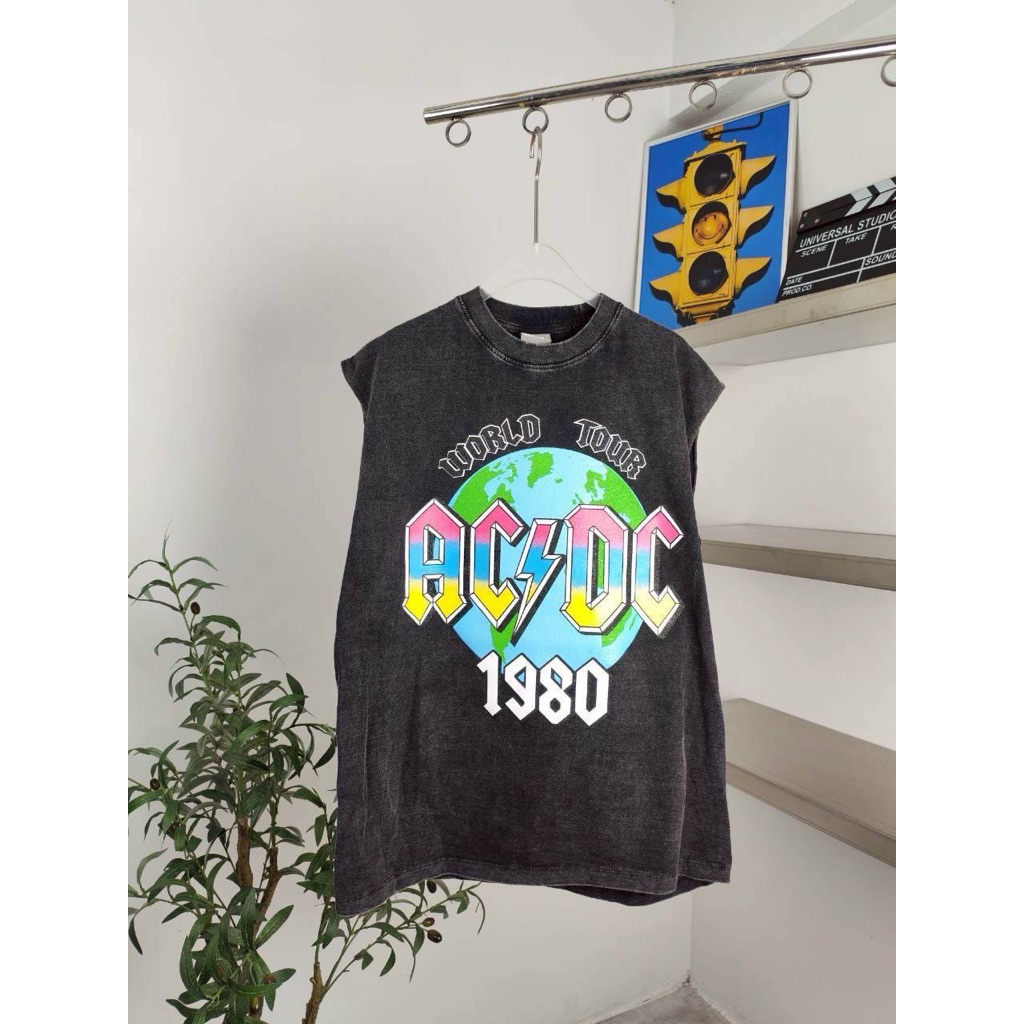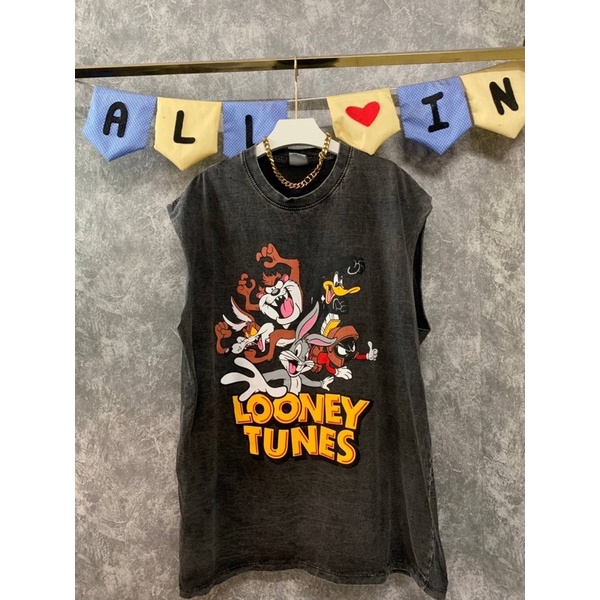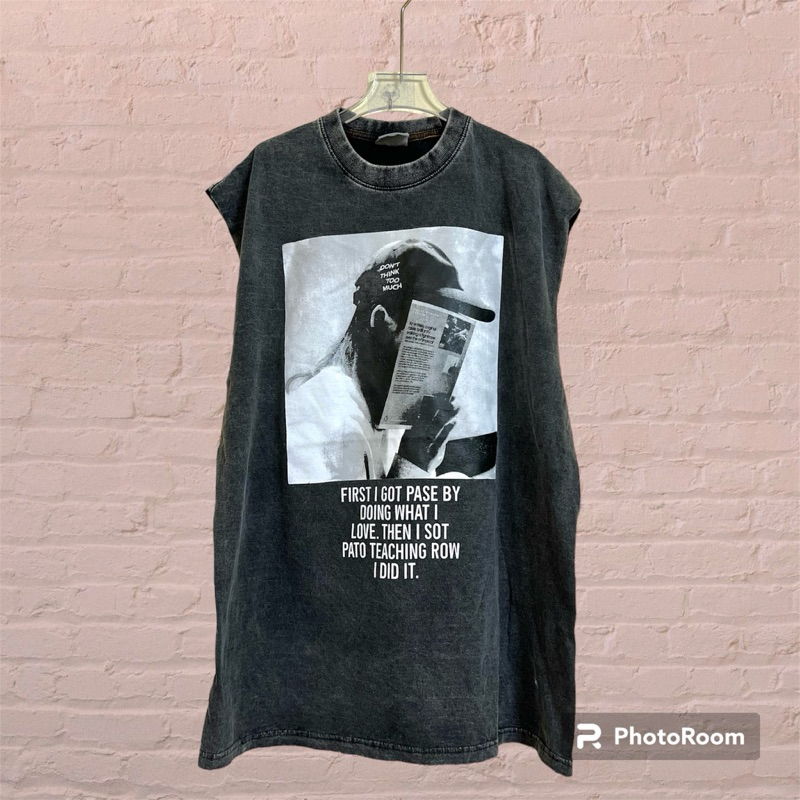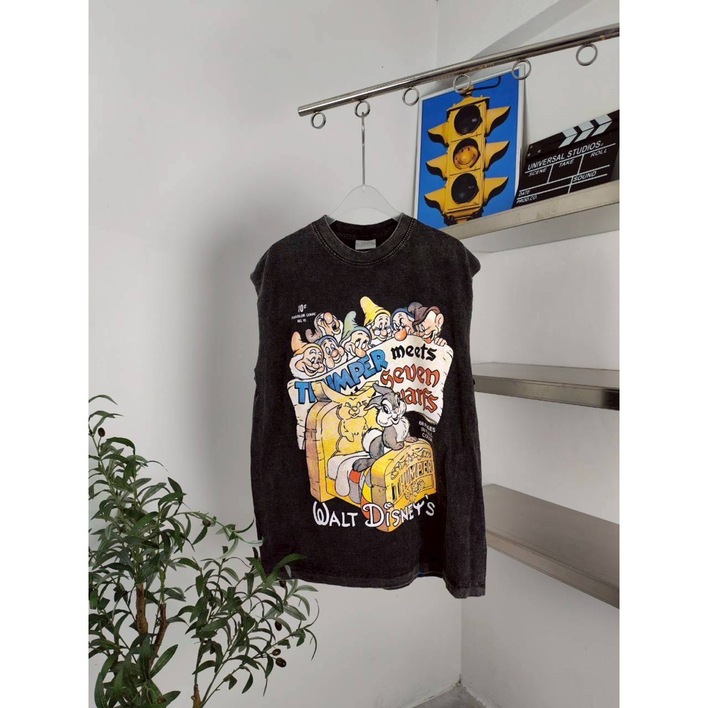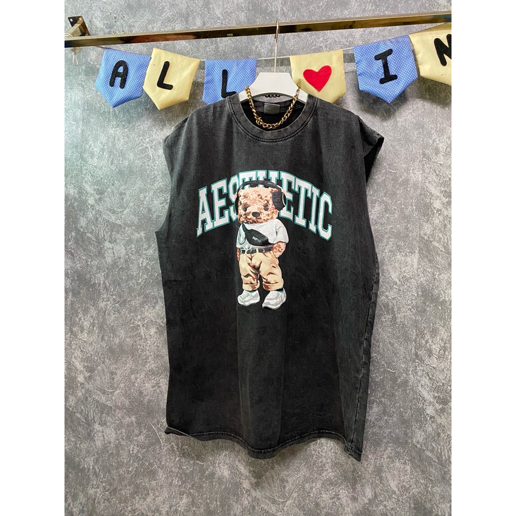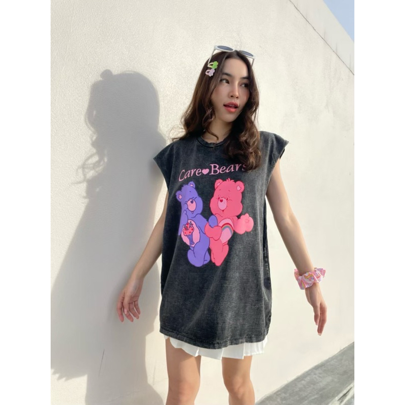 hmwe shop🍊เสื้อยิด แขนกุด งานผ้าฟอก ทรง Oversizeลายวง ลายวินเทจ ลายน่ารักผ้าดี ซักไม่ยืด Sise อก 44-46" ยาว 28