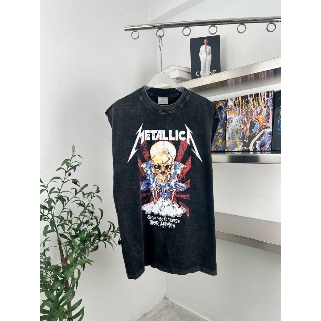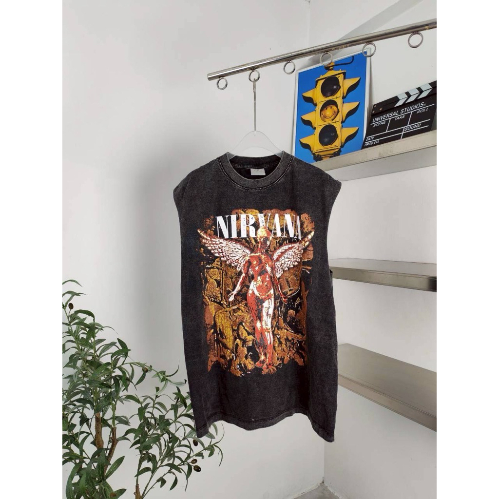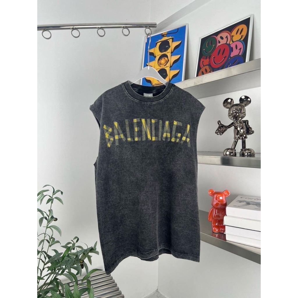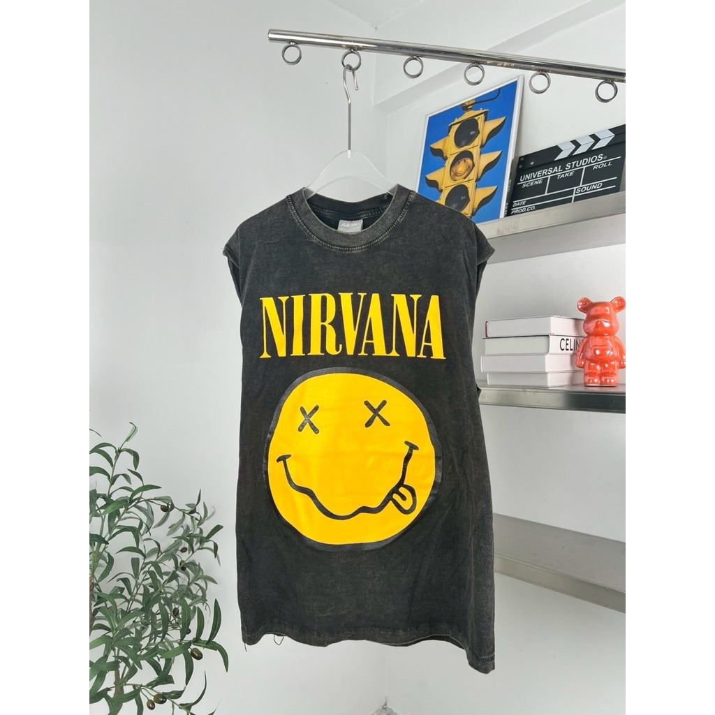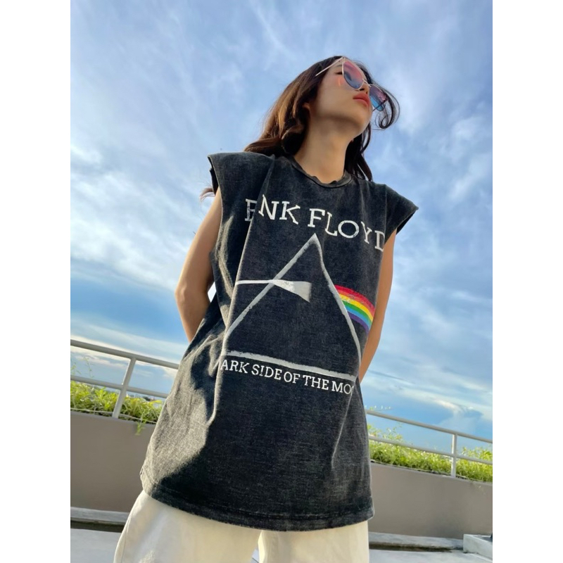 hmwe shop🍊เสื้อยิด แขนกุด งานผ้าฟอก ทรง Oversizeลายวง ลายวินเทจ ลายน่ารักผ้าดี ซักไม่ยืด Sise อก 44-46" ยาว 28