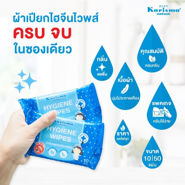 📢1 แถม 1 Karisma hygiene wipes 10pcs คาริสม่าผ้าเช็ดทำความสะอาด 10ชิ้น