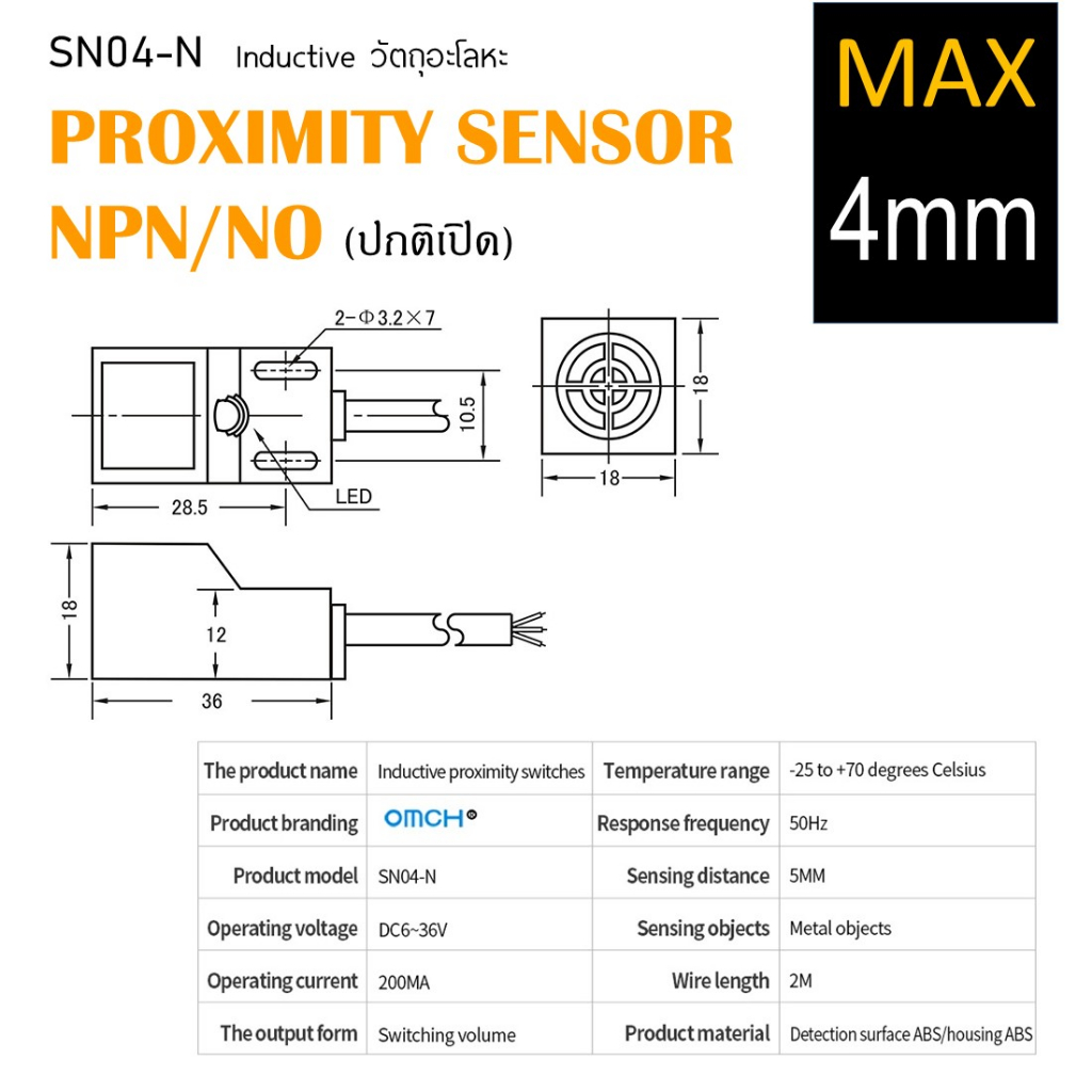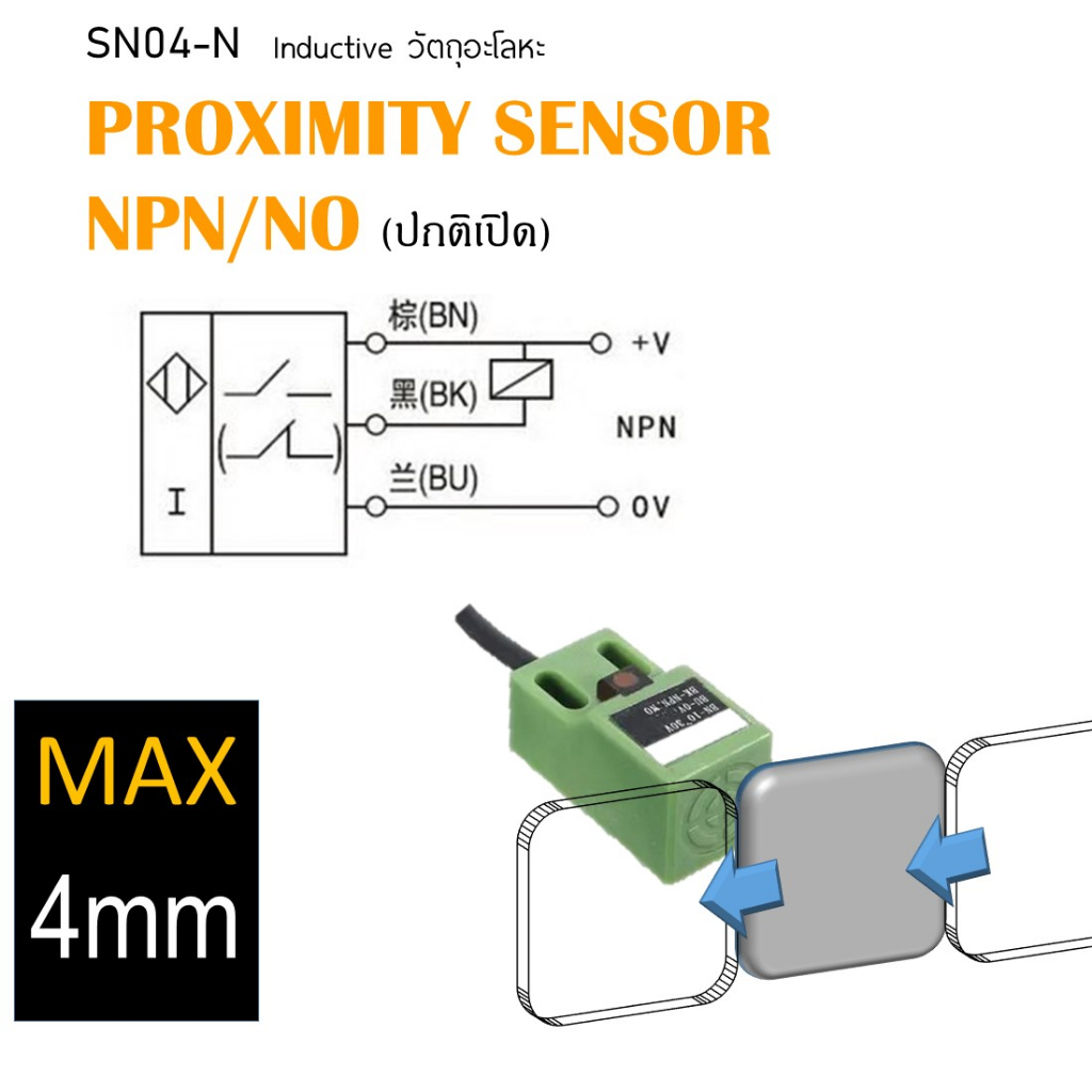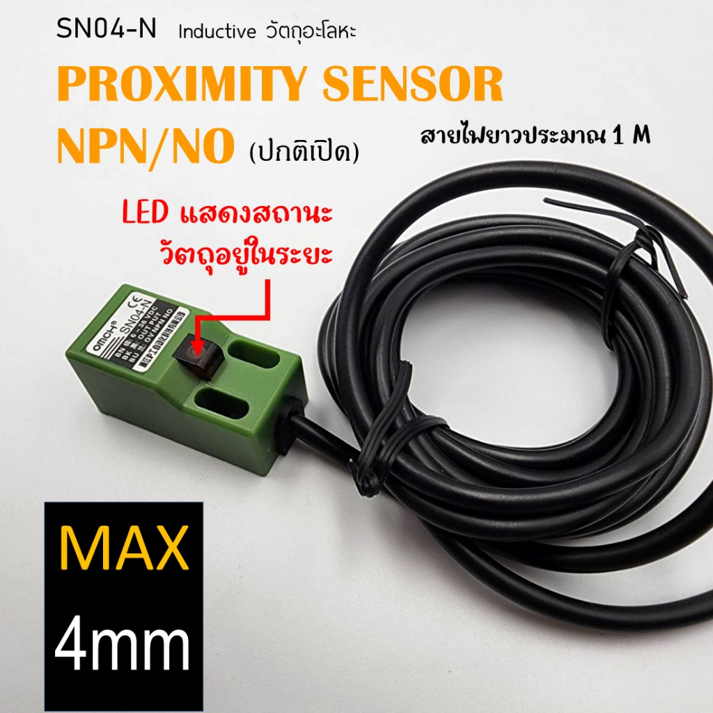 Inductive proximity (SN04-N)พร้อมขายึด เซนเซอร์ ตรวจจับโลหะ ระยะตรวจจับ 4 mm NPN แบบ NO ใช้ไฟ 6-36Vdc แบบ3สาย