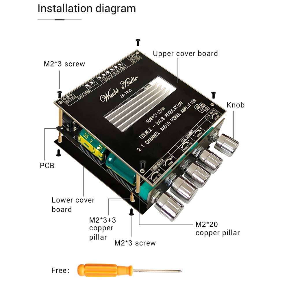 Zk-tb22 บอร์ดขยายเสียงไร้สาย บลูทูธ 2.1 TWS 50WX2+100W พร้อมตัวควบคุมเสียงแหลม และเบส