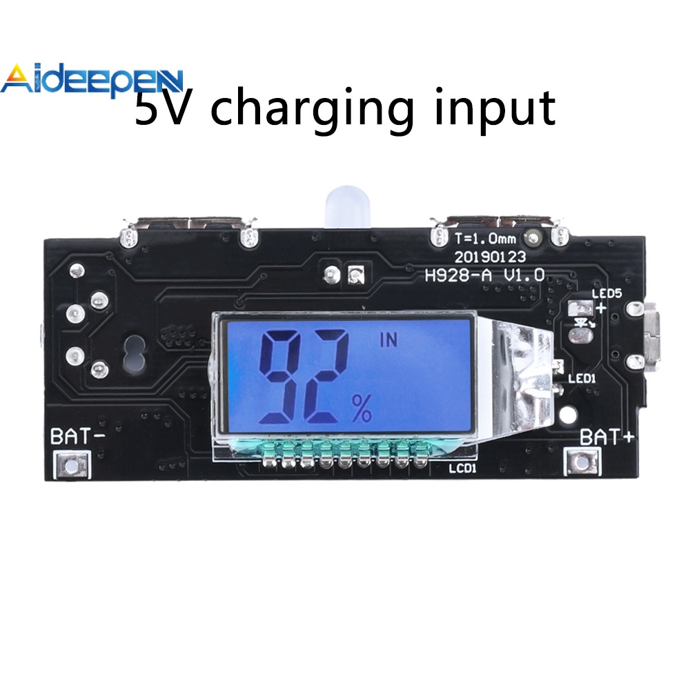 Aideepen โมดูลพาวเวอร์แบงค์ แบตเตอรี่ลิเธียม 18650 หน้าจอดิจิทัล USB คู่ DIY