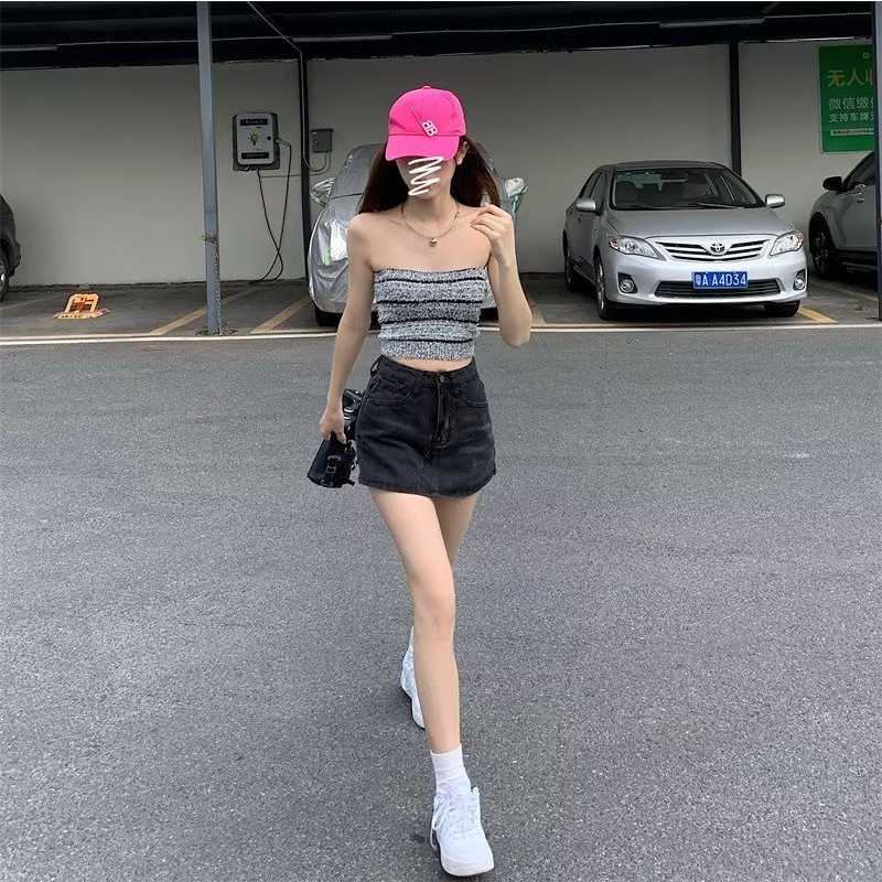 Rommers S-6XL ผู้หญิง กระโปรง เอวสูง A-line กระโปรง ย้อนยุค กางเกงขาสั้น