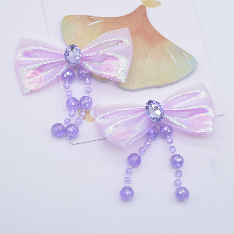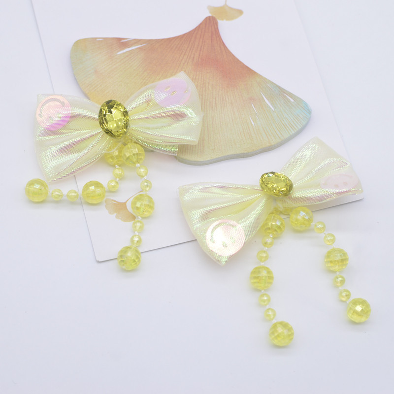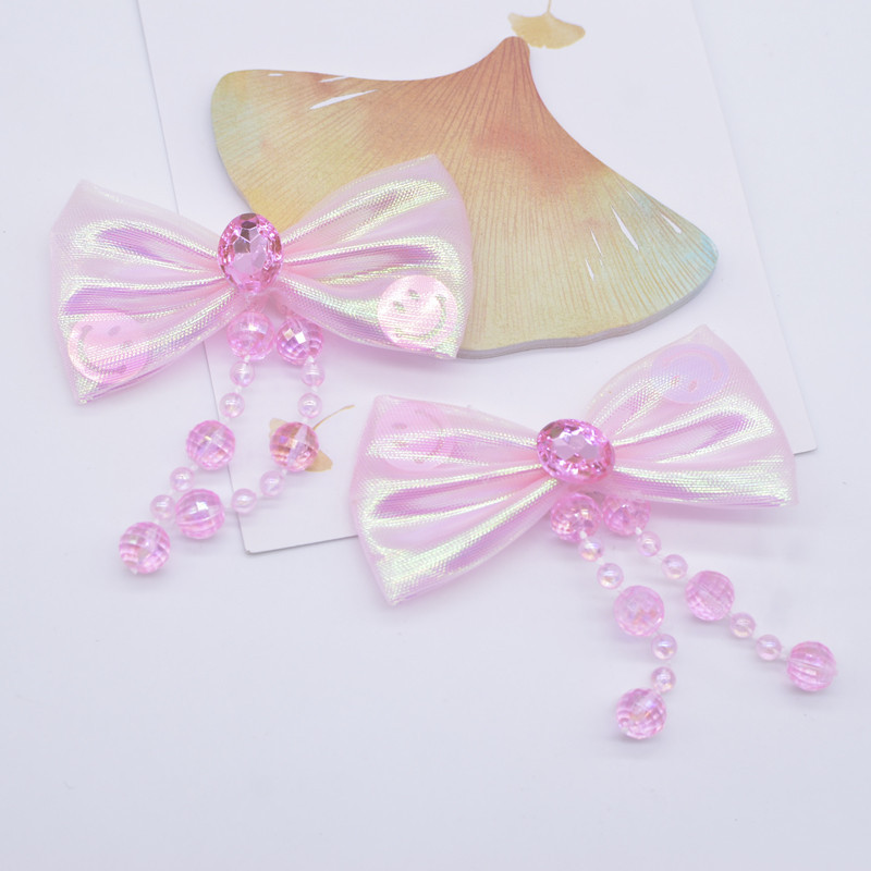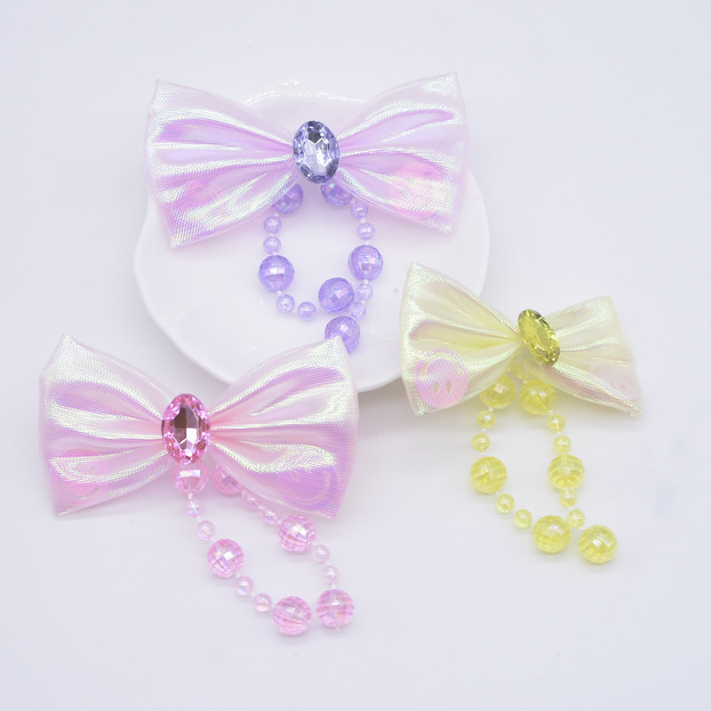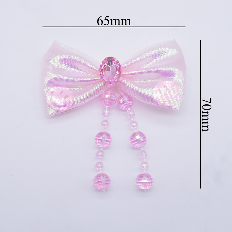 6ชิ้น65*70มิลลิเมตรสายรุ้งผ้าโบว์ผูกด้วยลูกปัดอะคริลิ ก pplique สําหรับ ทําเอง ชม. หูฟัง คลิปผมตกแต่งเสื้อผ้าหมวกเย็บแพทช์