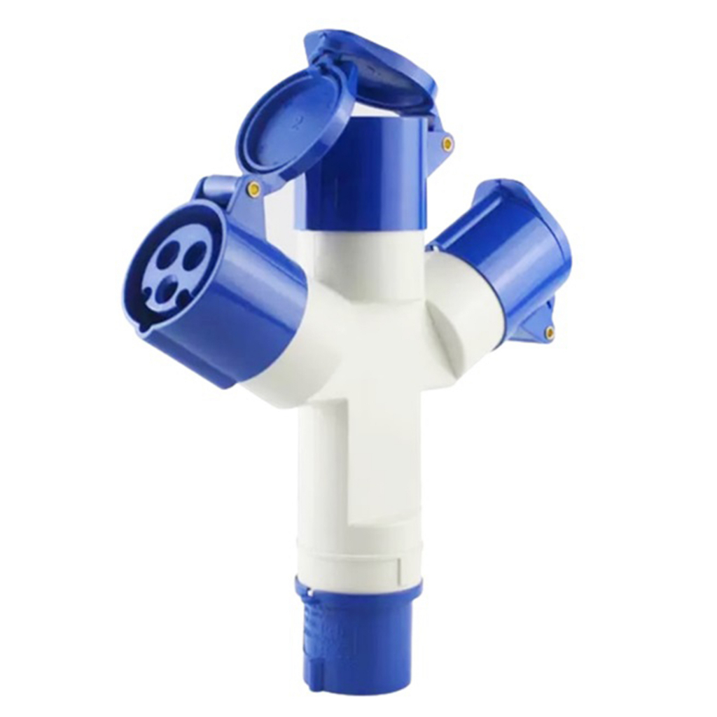 ปลั๊กพาวเวอร์ 3 ทาง 2P+E 16A กันน้ำ IP44 ตัวผู้+ตัวเมีย สำหรับงานก่อสร้าง โรงงาน งานไฟฟ้า