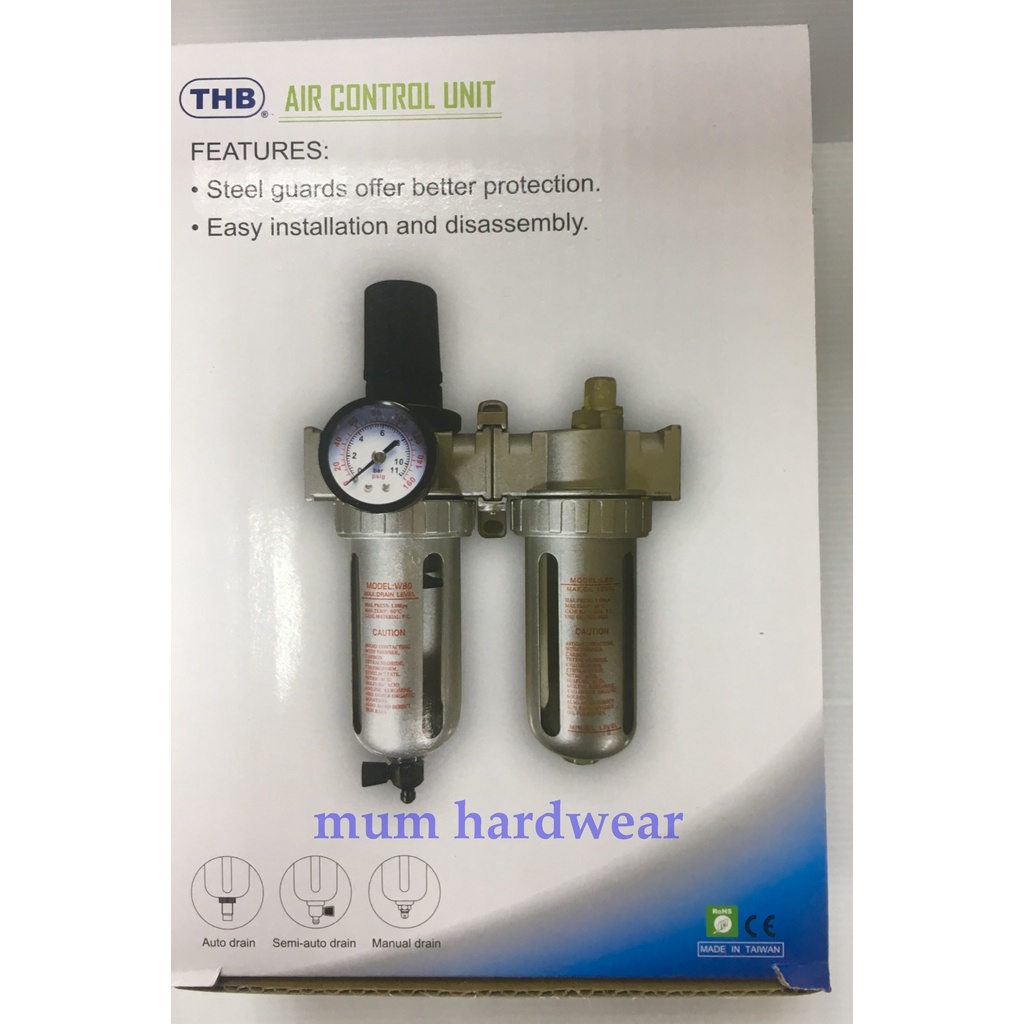 THB ชุดกรองลม F+R+L (FRL 80) (Filter + Regulator + lubricator) ดักน้ำ+ตั้งลม+จ่ายน้ำมัน Made in Taiwan