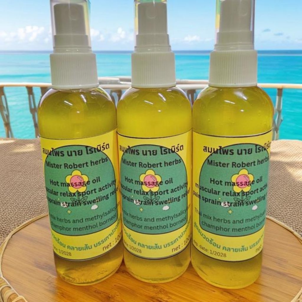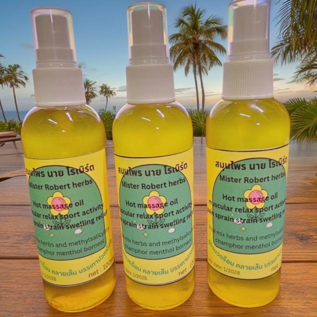 1 ขวด สเปรย์ บอดี้ออยล์ น้ำมันนวดตัว สูตรร้อน ผ่อนคลาย สมุนไพร นาย โรเบิร์ต Mister robert herbs massage oil 100ml