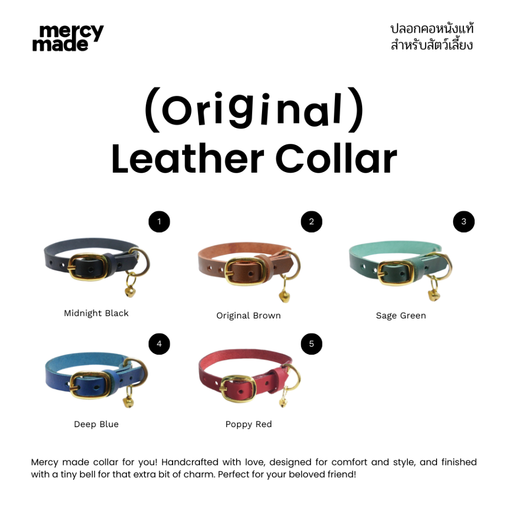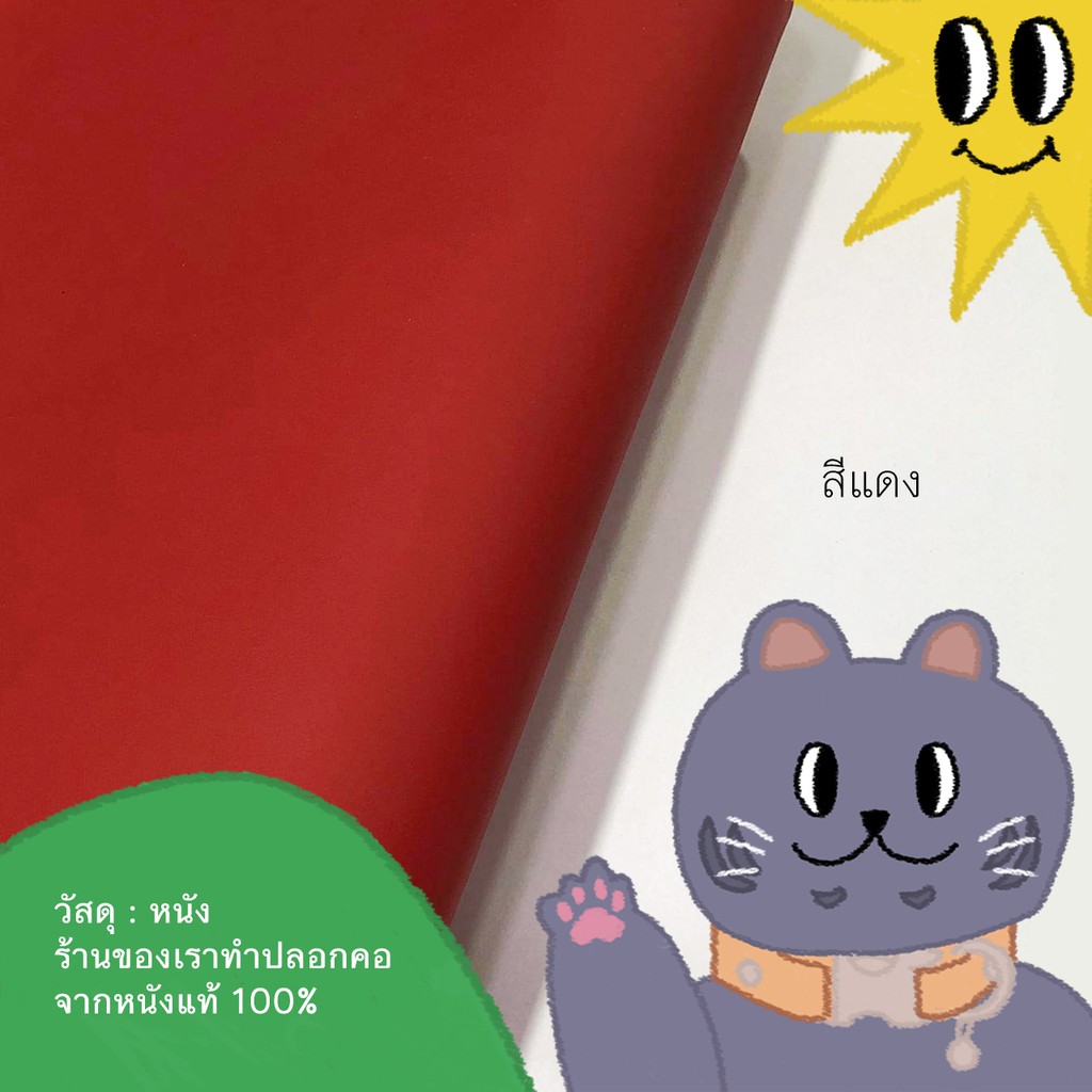 (หนังแท้) ปลอกคอแมวและสุนัขเล็ก - สีแดง (Poppy Red | Handmade Collar)