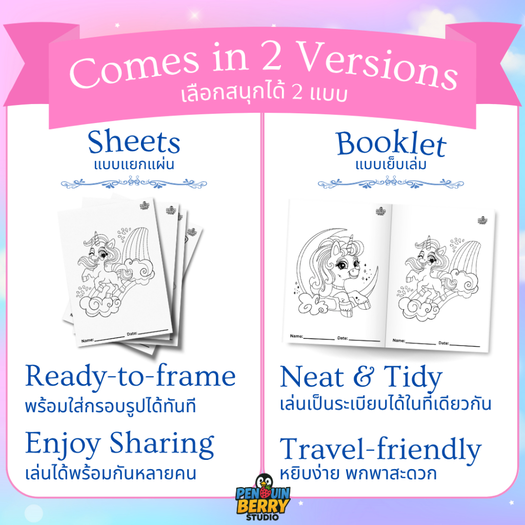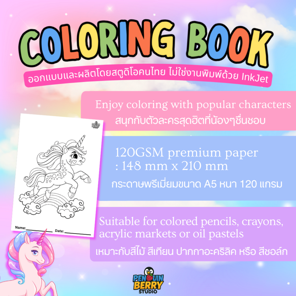 สมุดระบายสี Happy Unicorn ยูนิคอร์นใจดี หลากสไตล์ เสริมจินตนาการ Disney Magic, Fairy Tale Fun, My Little Pony