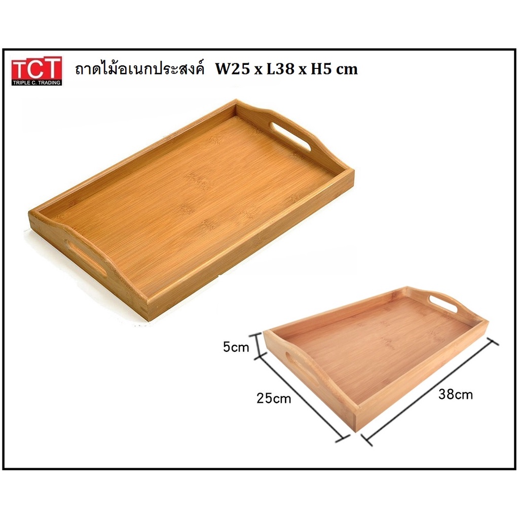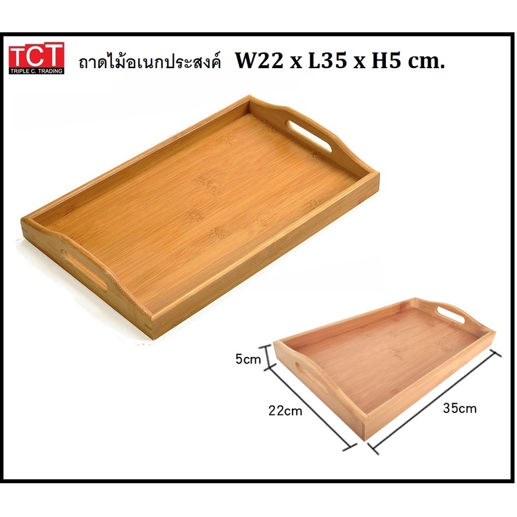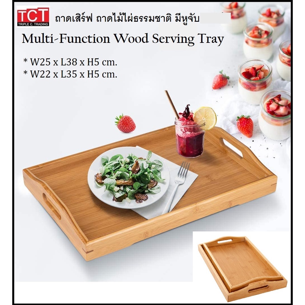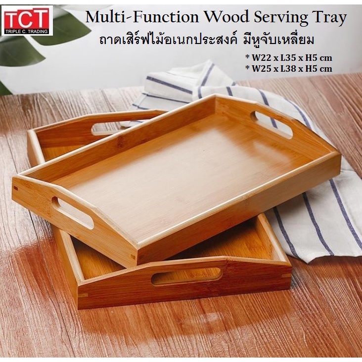 ถาดเสิร์ฟไม้ ถาดเสิร์ฟอาหาร ถาดเสิร์ฟเครื่องดื่มแบบมีหูจับ ไม้ยางพารา มี 2 ขนาด 22x35x5cm.และ25x38x5cm. Wooden Tray