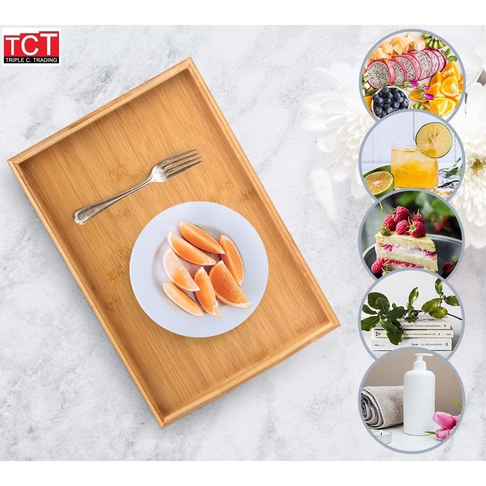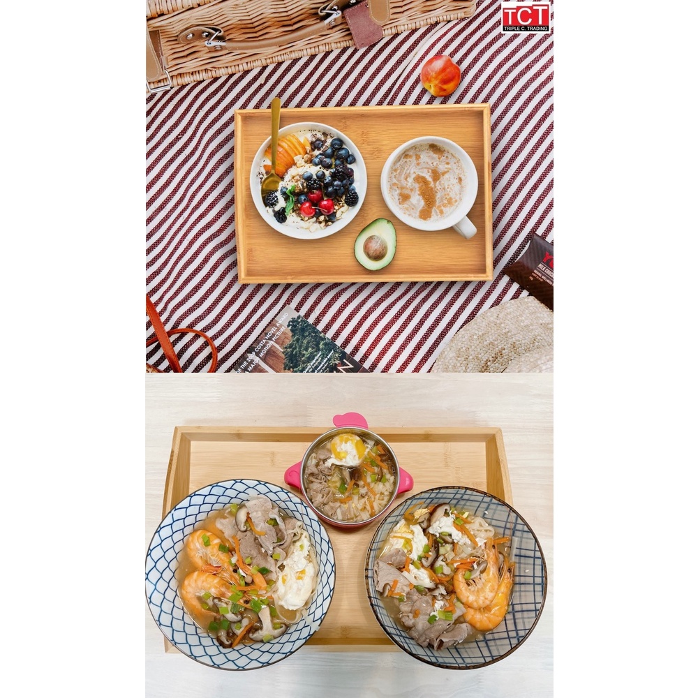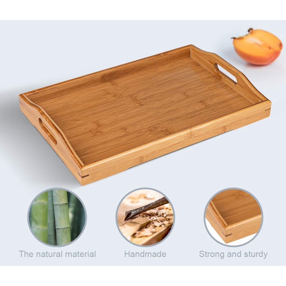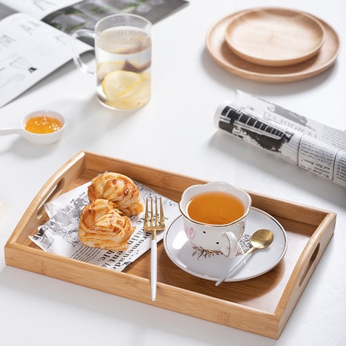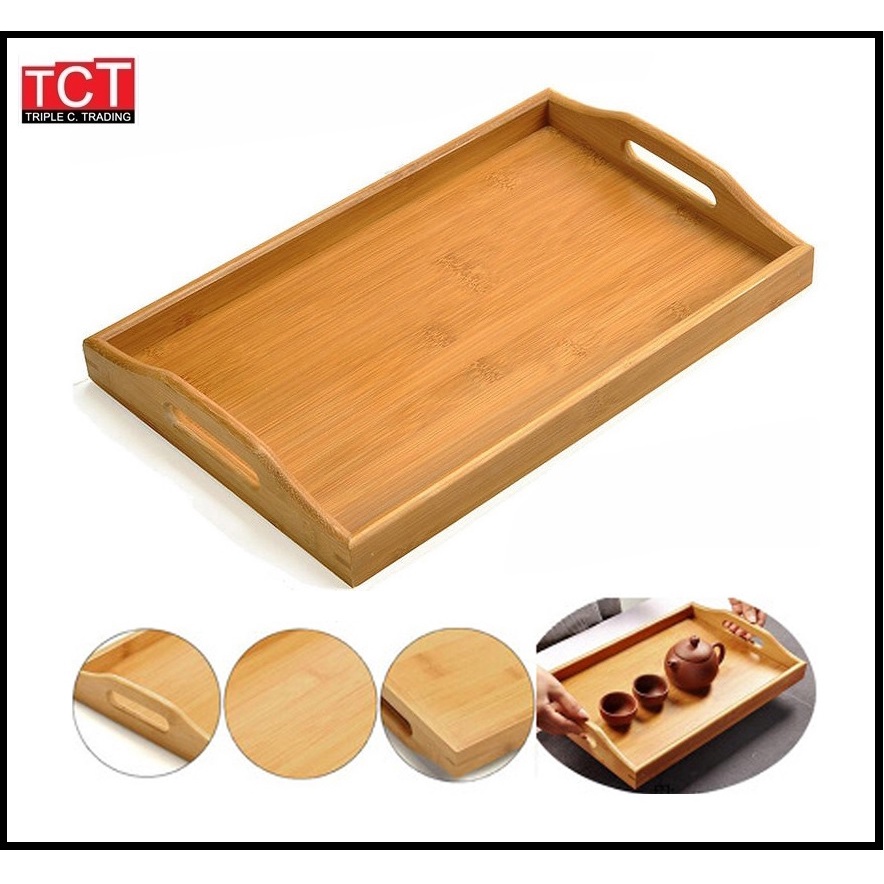 ถาดเสิร์ฟไม้ ถาดเสิร์ฟอาหาร ถาดเสิร์ฟเครื่องดื่มแบบมีหูจับ ไม้ยางพารา มี 2 ขนาด 22x35x5cm.และ25x38x5cm. Wooden Tray