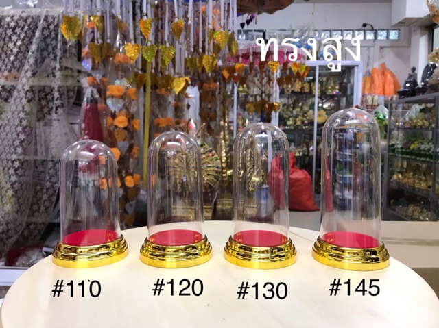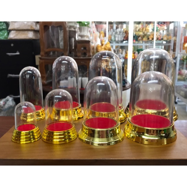 ตู้ครอบพระ 8 ขนาด ฐานกลมสีทอง มีทรงสูง ราคาต่อชิ้น
