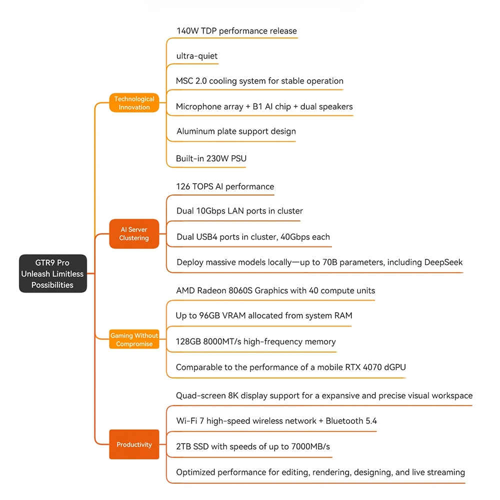 [Official ศูนย์ไทย] Beelink GTR9 Pro รุ่นใหม่ล่าสุด 2025 ซีพียู AMD Ryzen™ AI Max+ 395 ขนาด RAM 128GB ROM 2TB*1 slot