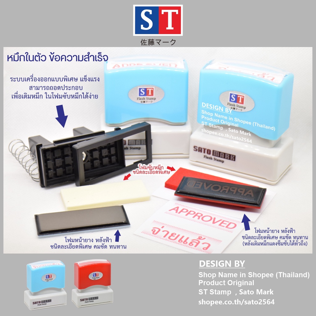STตรายาง "สำเนาคู่ฉบับ" ตรายางหมึกในตัว ข้อความสำเร็จ หมึกกันน้ำ (แบบอักษร)