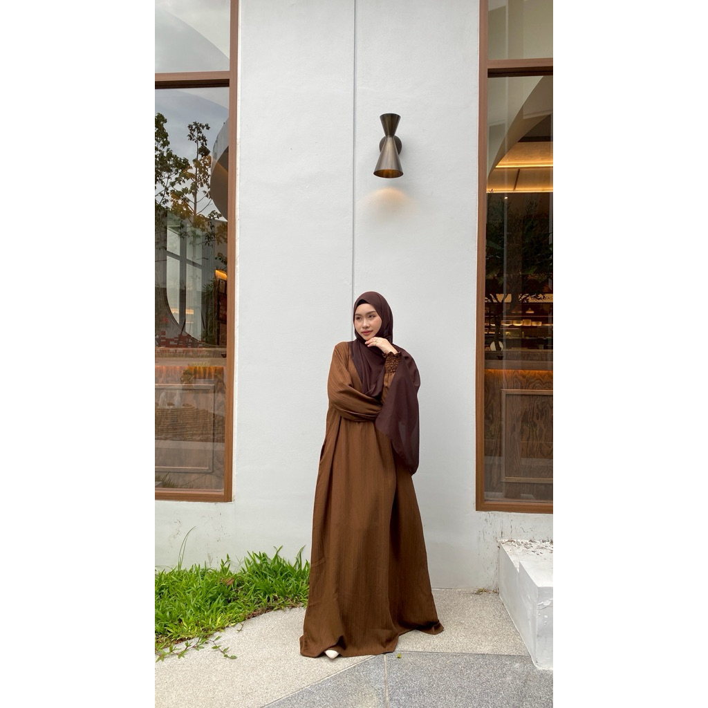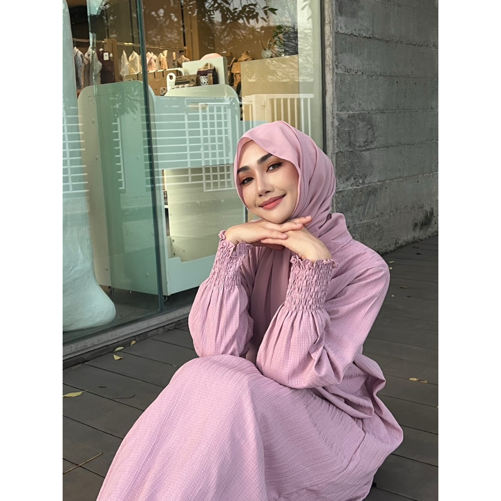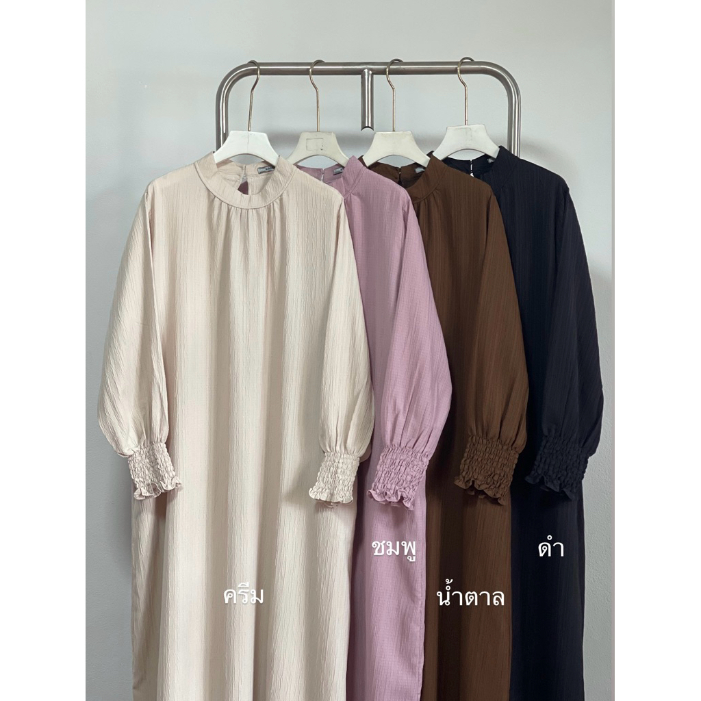 Marilyn เดรสยาว แขนสม็อค อบาย่า ชุดยาว ลำลอง