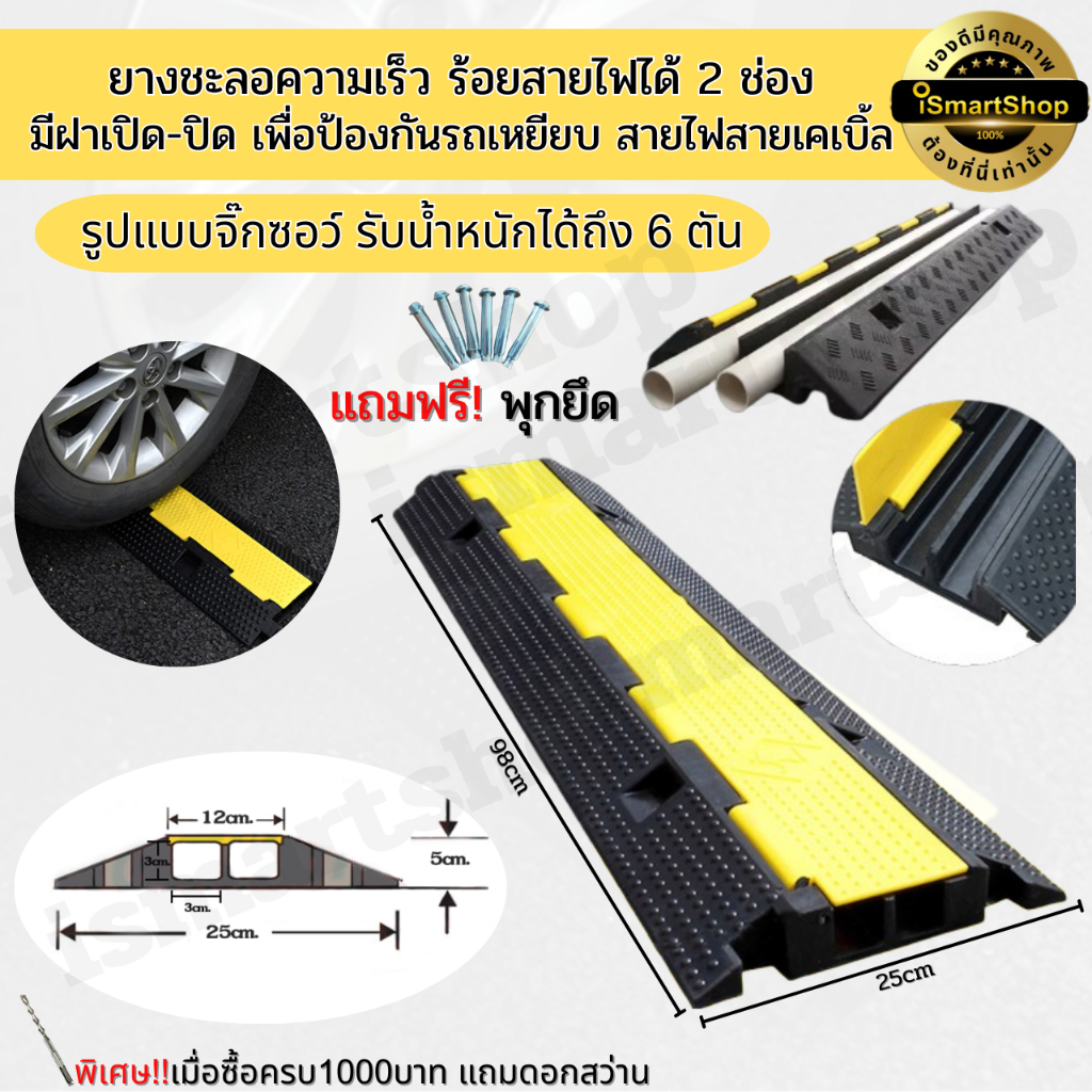 ยางลูกระนาด ขนาด 25x98x5cm. ป้องกันสายเคเบิล/สายไฟ/สายยาง 2 ช่อง แบบจิ๊กซอว์